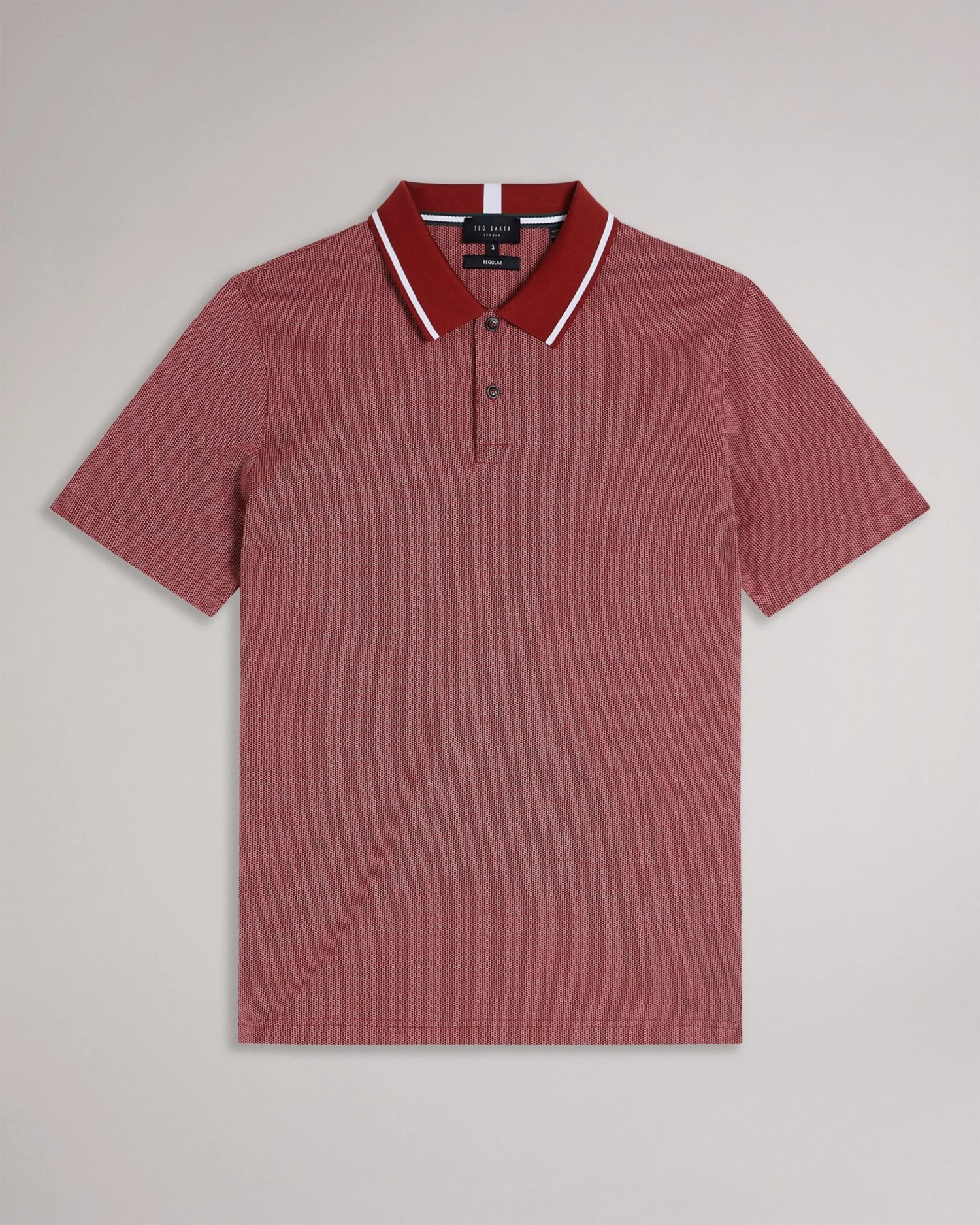 Polo shirt Mini jacquard stitch Classic collar 100% Cotton Short sleeved Button fastening O’Shea is 6’2.5″ / 1.89m and wears Navy in a Ted size 3