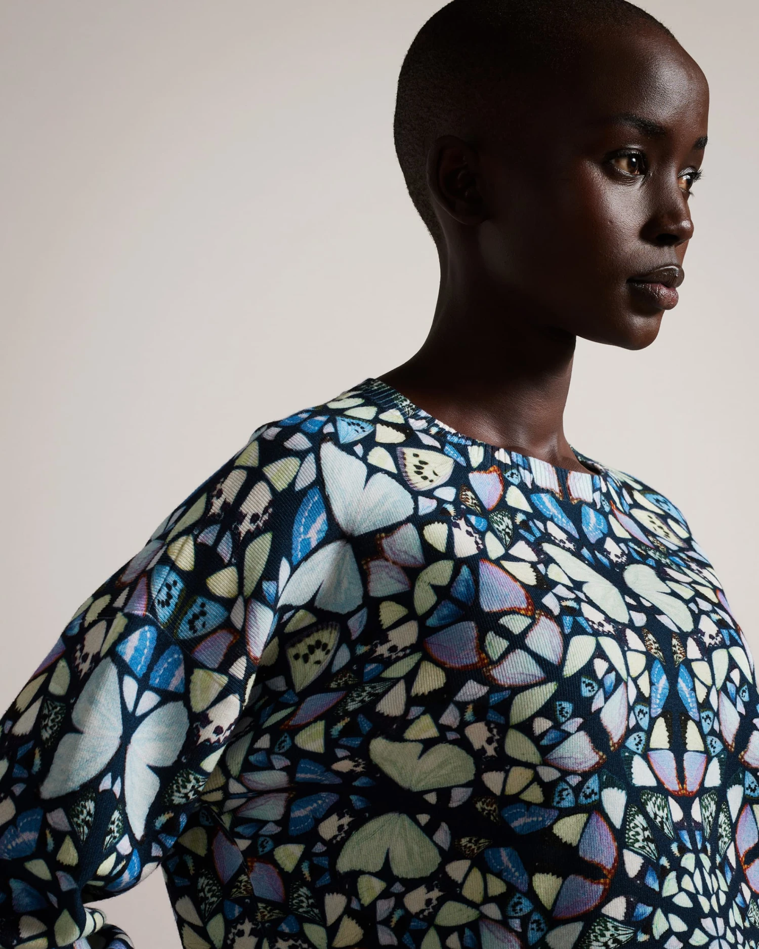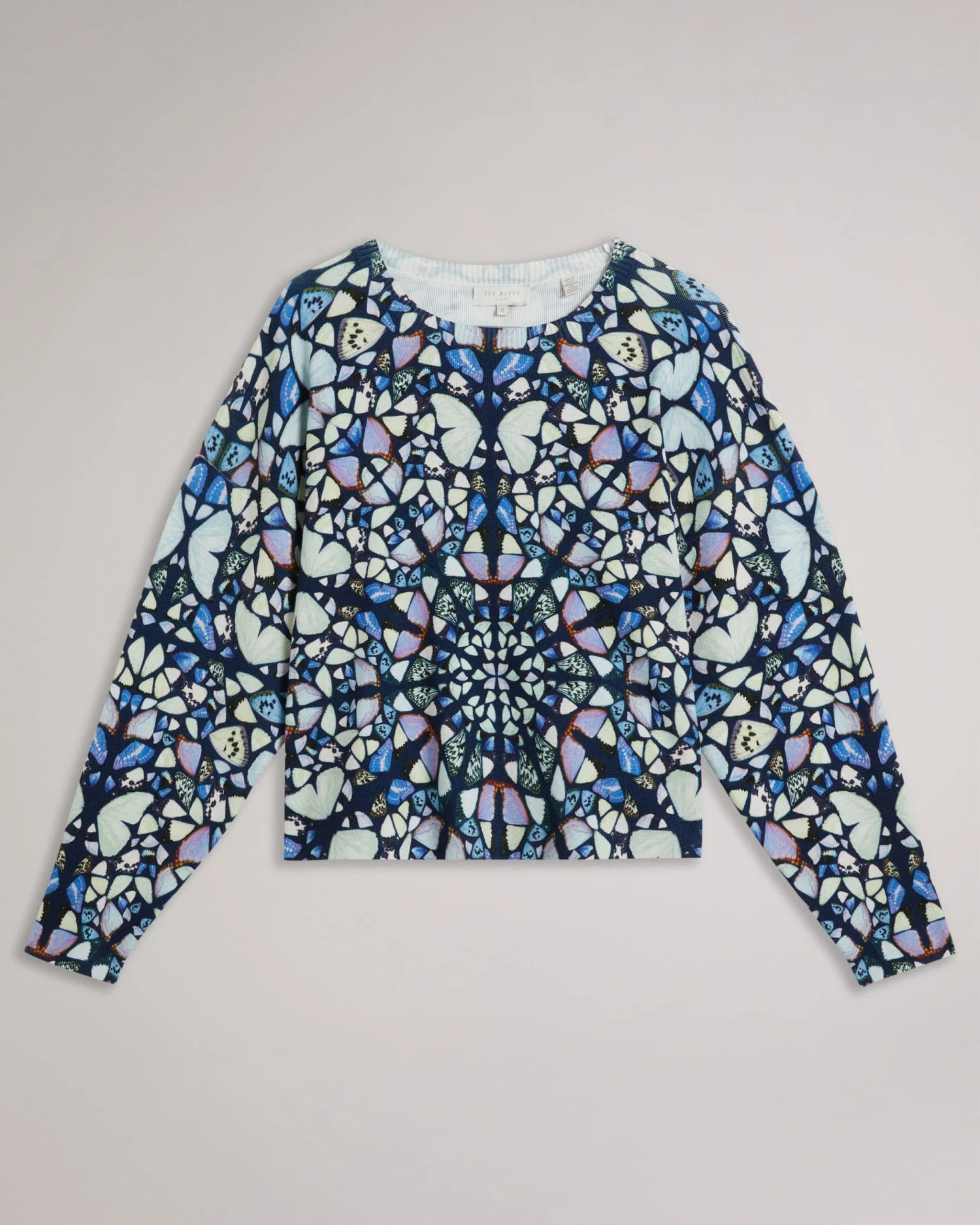 A boxy fit, ultra-soft knit and kaleidoscope butterfly print make ASHLINA a winner. Cropped and boxy in shape, this knitted top is sure to be your new go-to for casual days on the go.