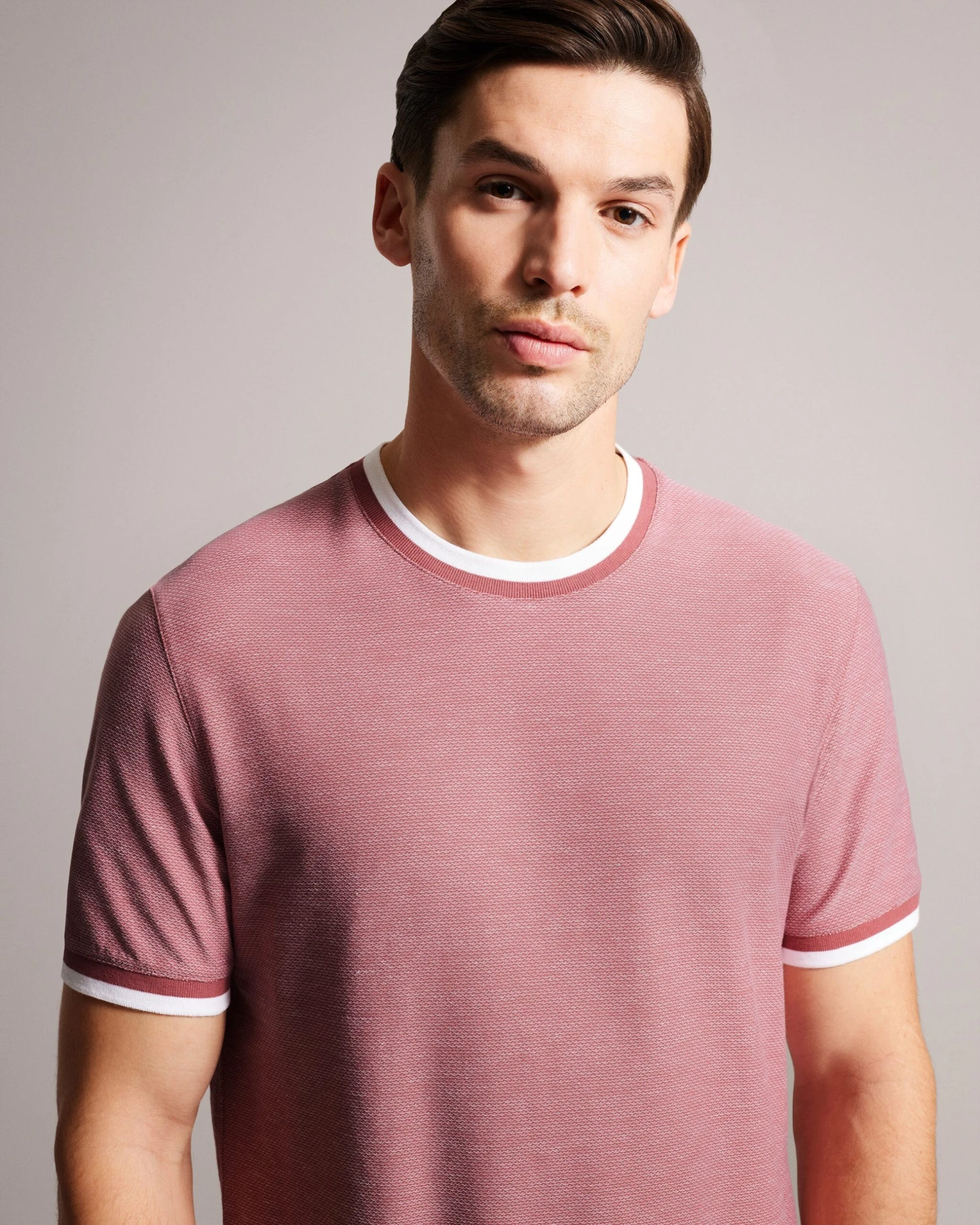 T-shirt Regular fit Short sleeved 100% cotton Textured fabric Crew neck Joseph is 6’1″ / 1.85m and wears Navy in a Ted size 3
