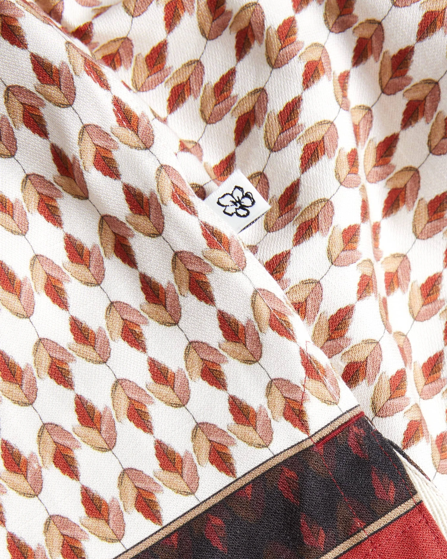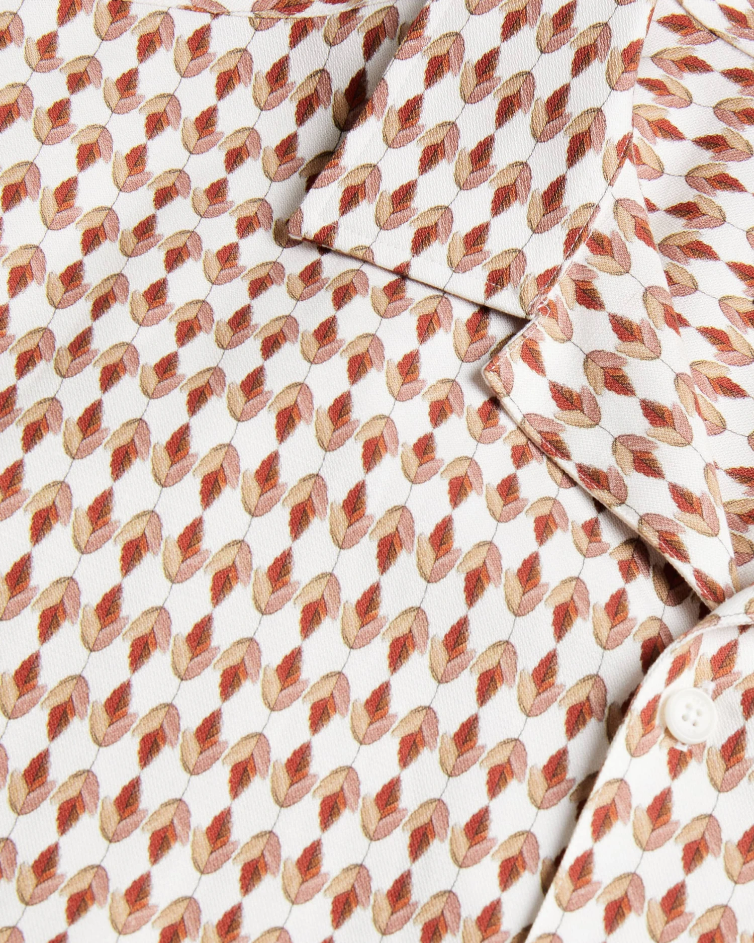 Button up shirt Lyocell, linen and cotton Short sleeved Geometric print Contrasting borders Revere collar