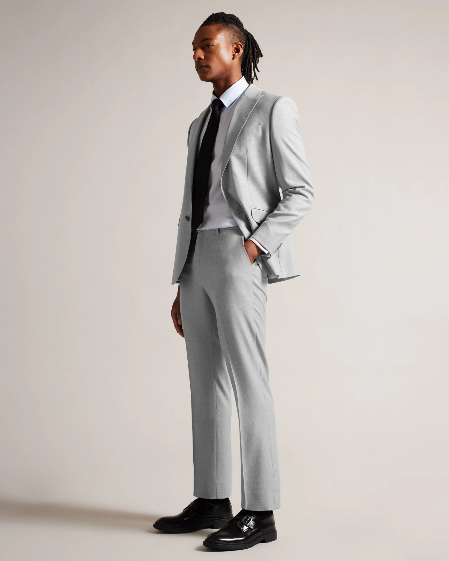 Suit trousers 100% wool Slim fit Pockets Zip and hook fastening Belt loops Elasticated waist Ty is 6’1″ / 1.86m and wears Medium Pink in 32 R