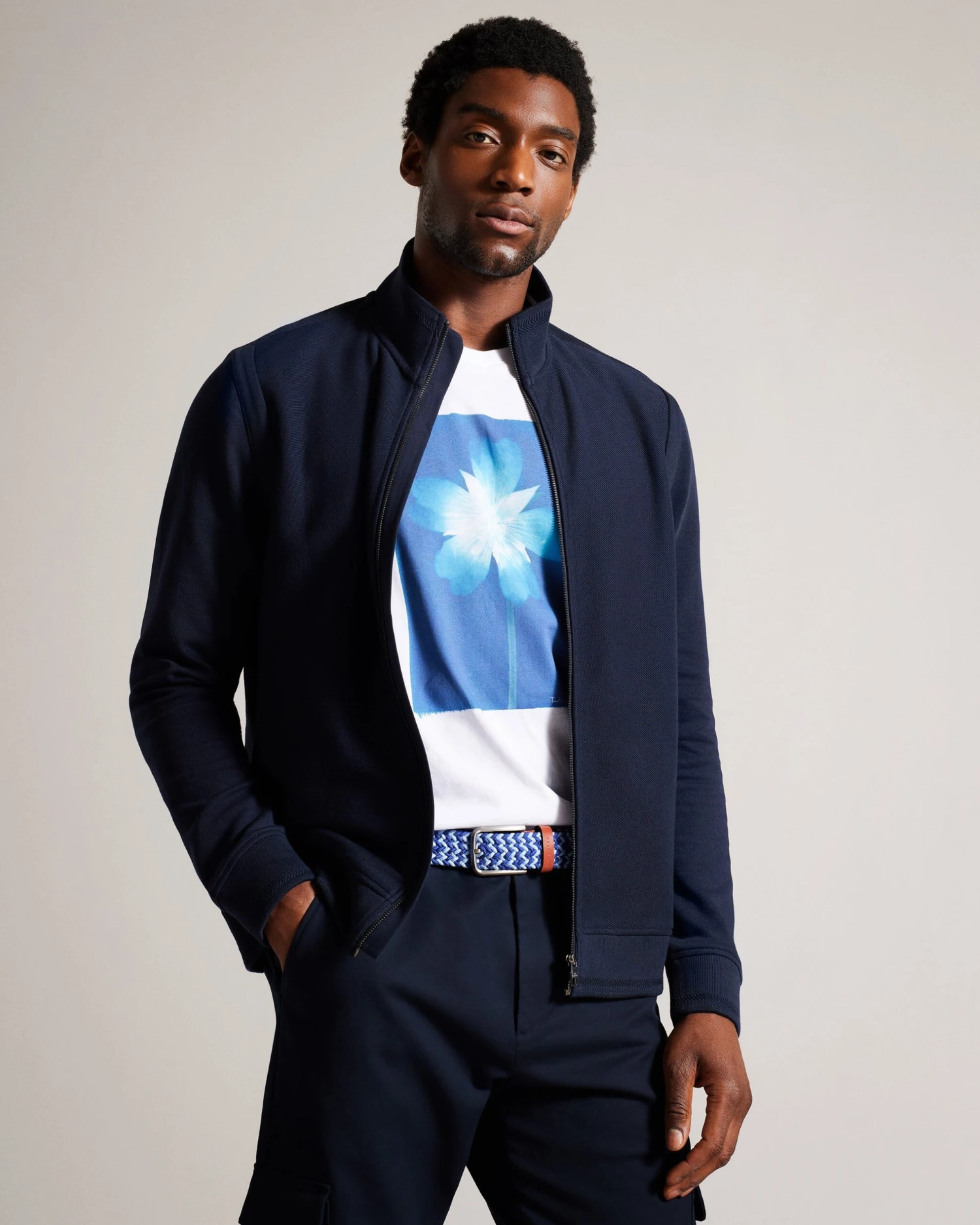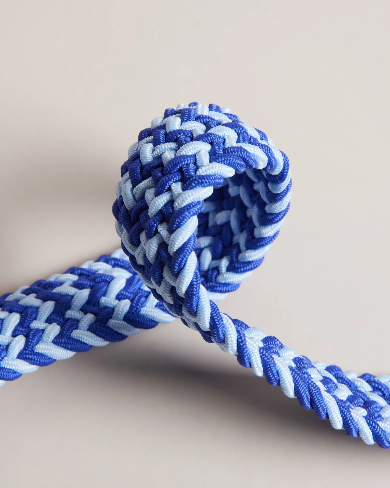 Elasticated belt Chevron weave Buckle fastening Leather keeper loop Debossed Ted Baker logo