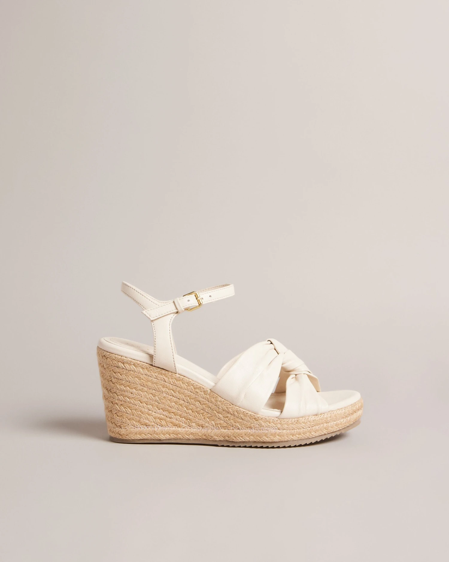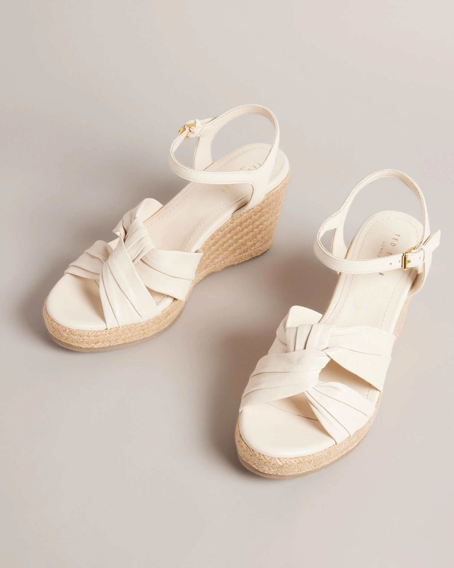 Espadrille sandals Platform wedge heel Knotted strap Top grain leather Slingback heel Buckle fastening Heel height: 8cm