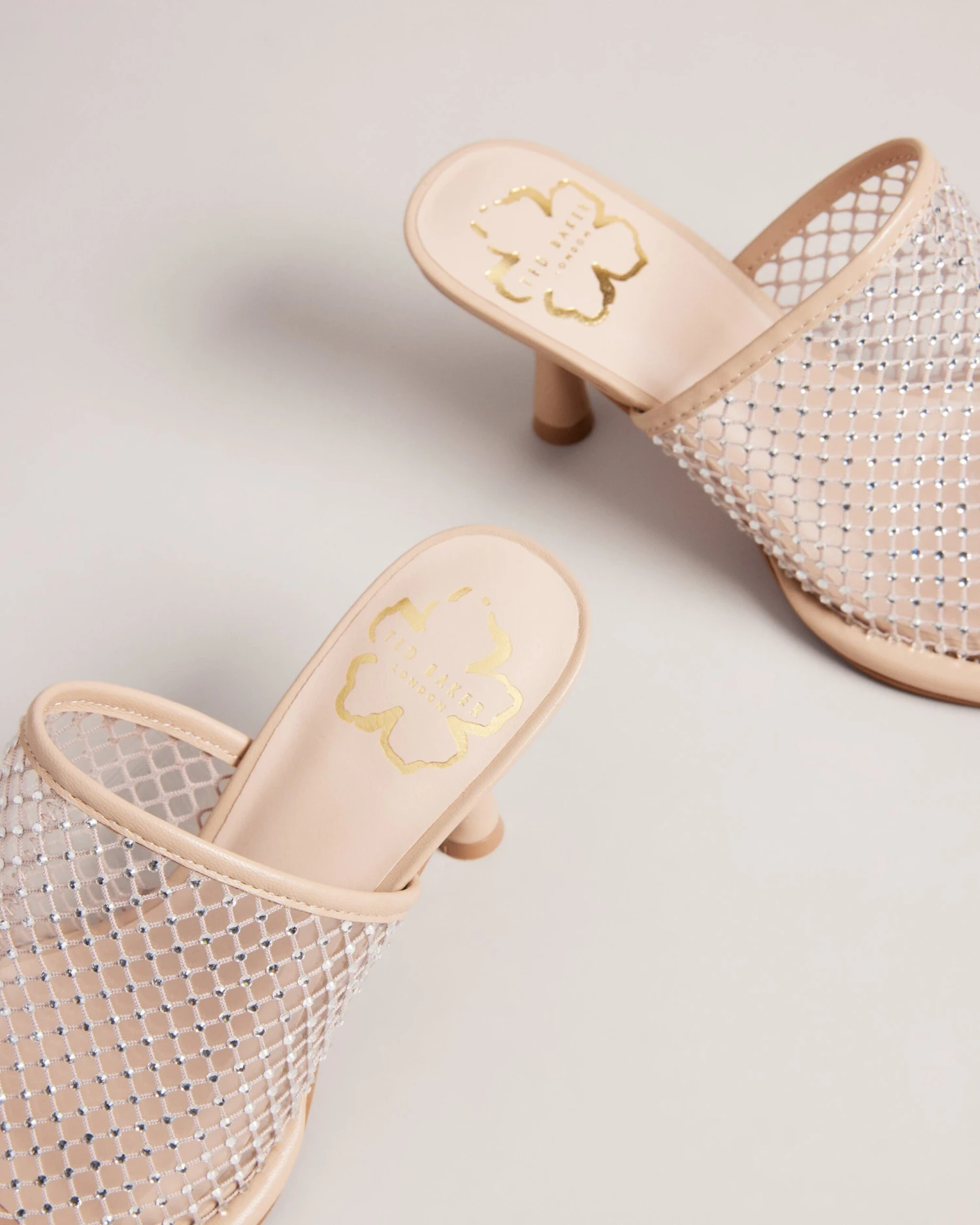 - Crystal embellished mesh upper