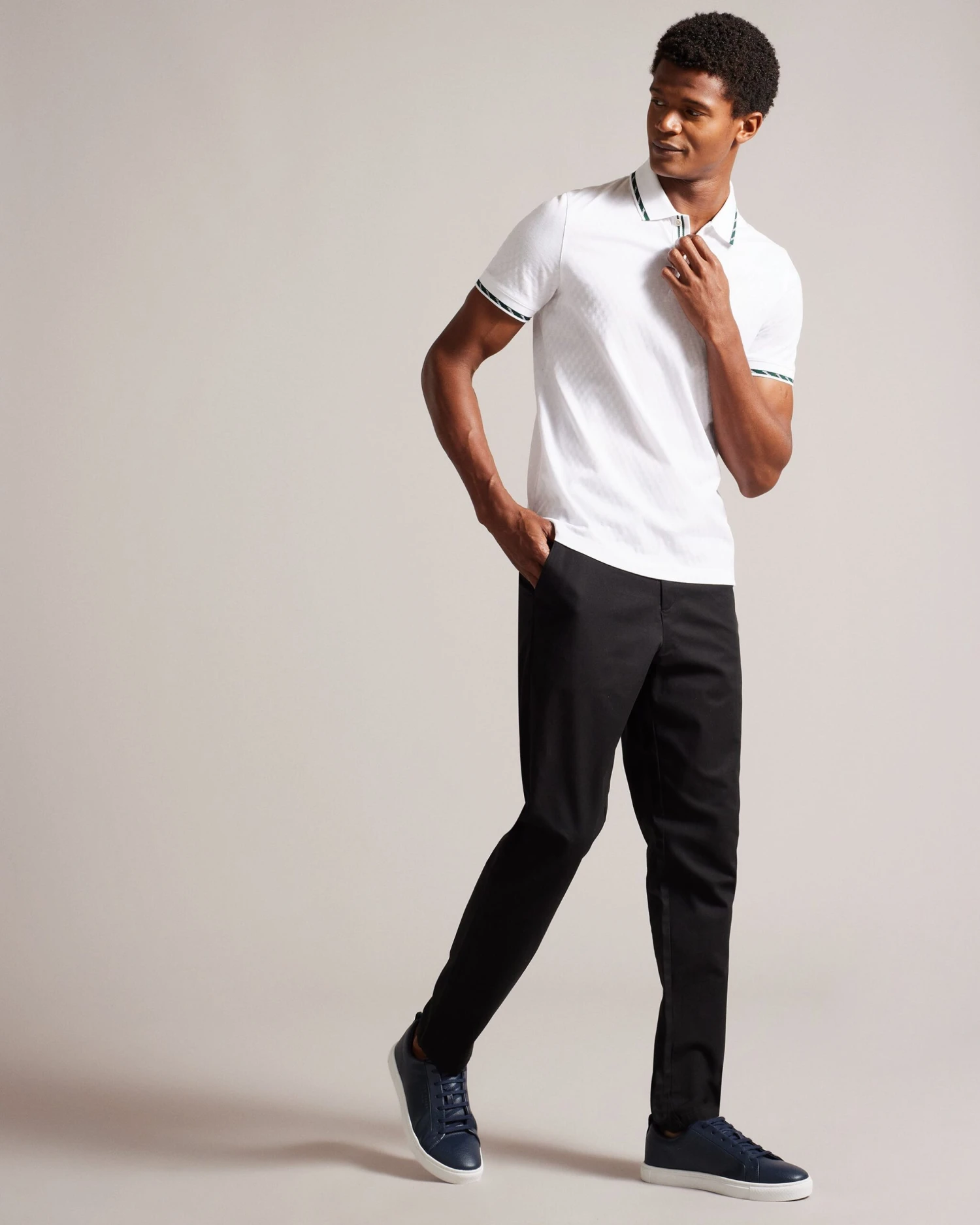 Level up your look with COLSON. Our signature house check adds a subtle pop of colour to this classic polo. Its pure cotton fabrication ensures comfort and breathability, making it perfect for any occasion.
