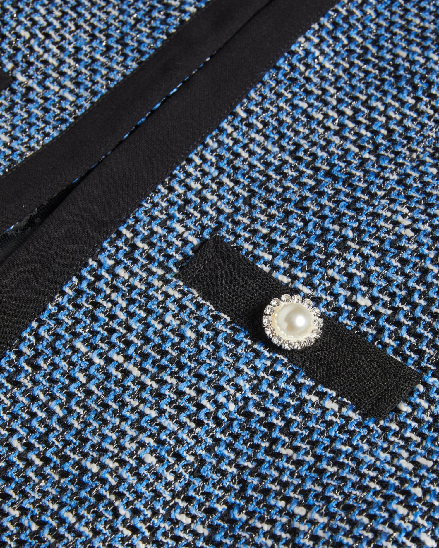 Class up your wardrobe with DINIIA. With a boucle texture, contrast details, and a hook fastening, this jacket is sure to keep you warm and comfortable. Embellished faux pearl buttons add a glam finishing touch to the look.
