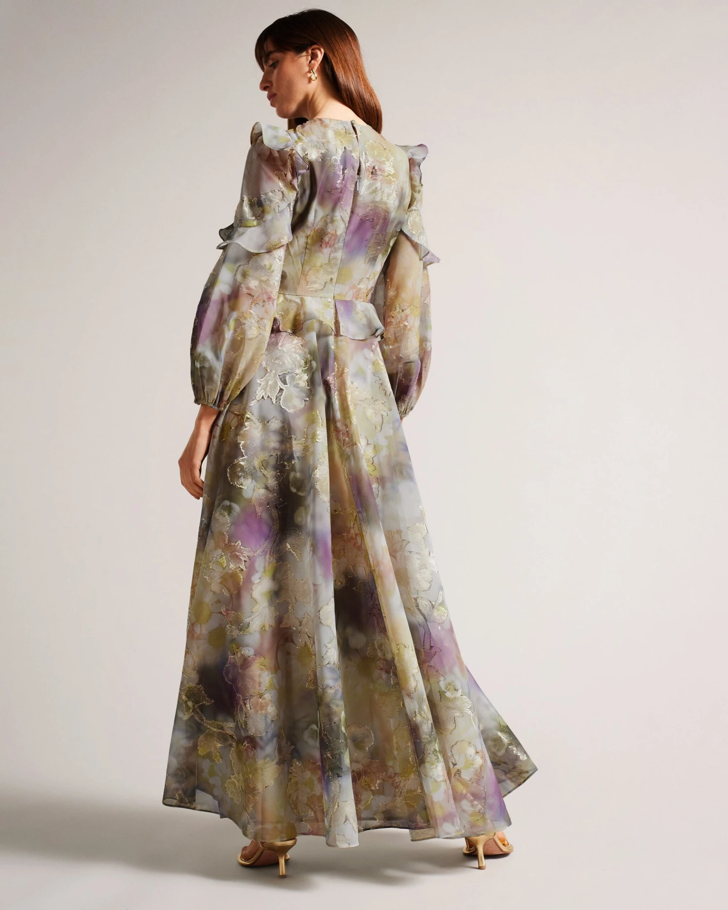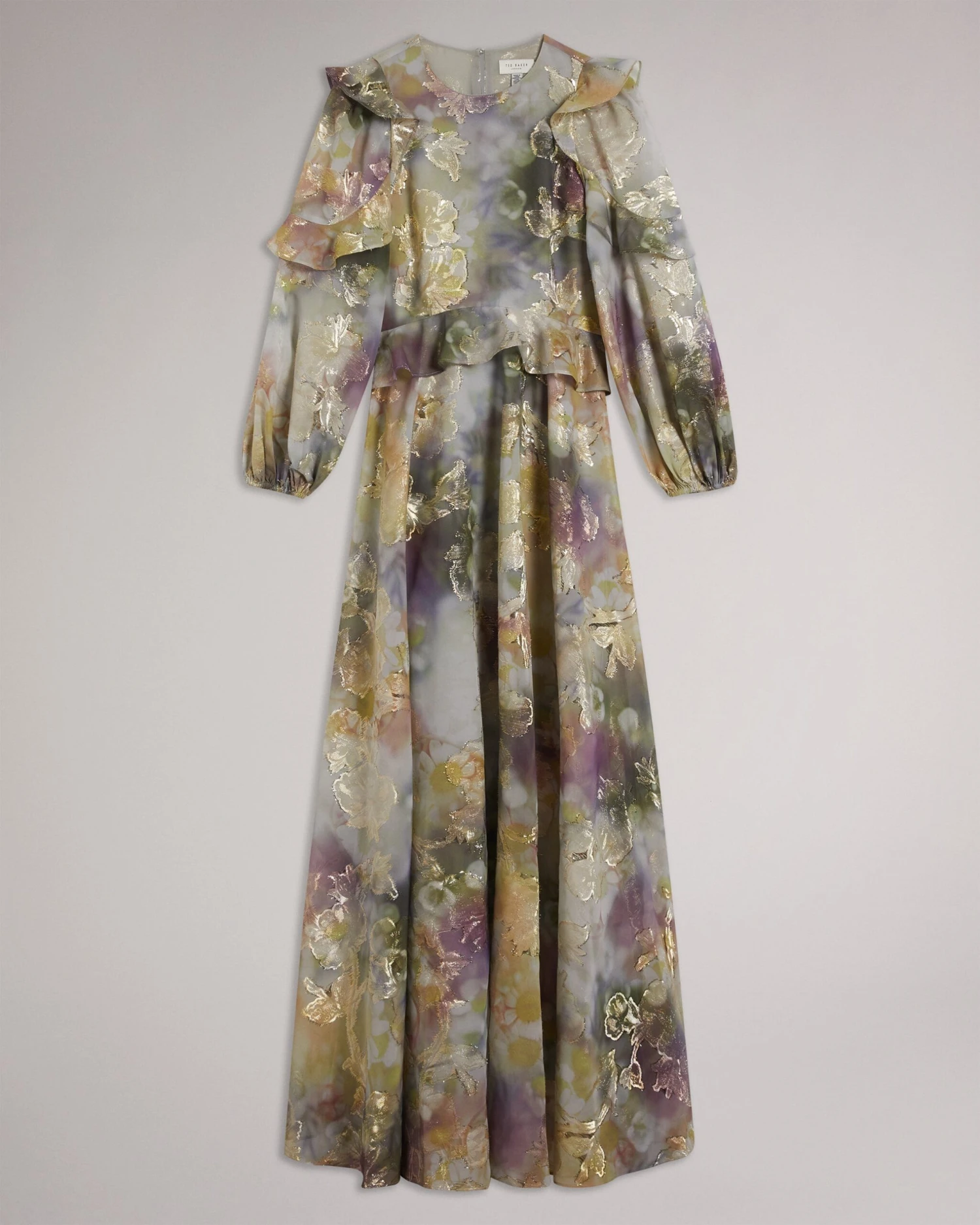 Lose yourself in this dreamy maxi dress. A standout piece for extra special occasions, DORATHI steals the show. Boasting ruffles, florals and metallic details—need we say more?