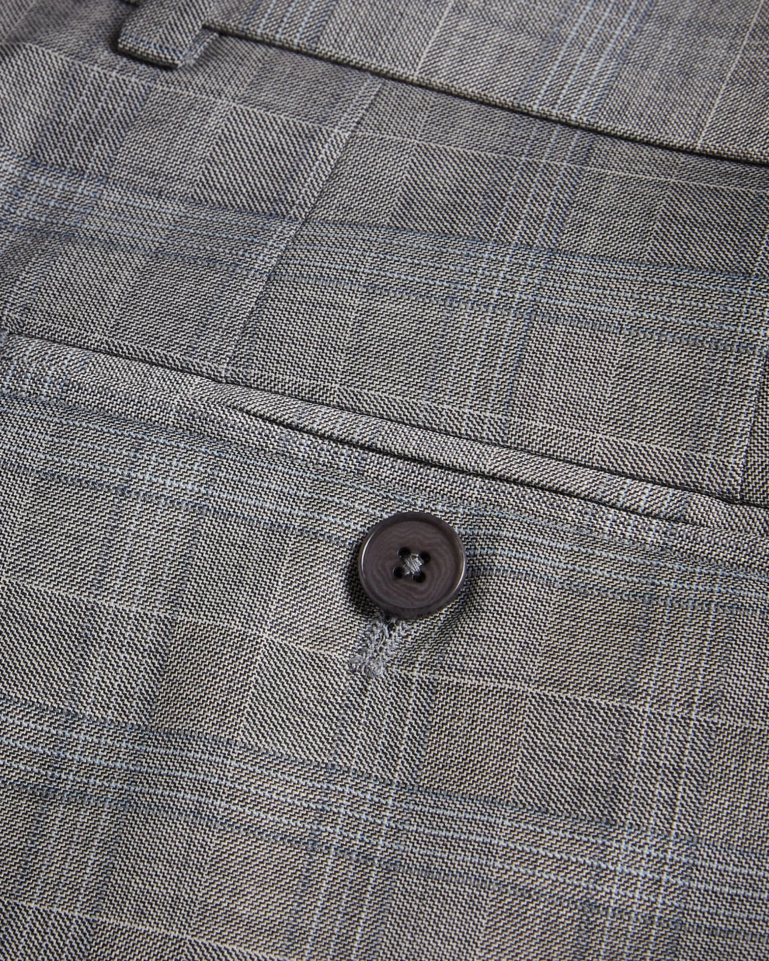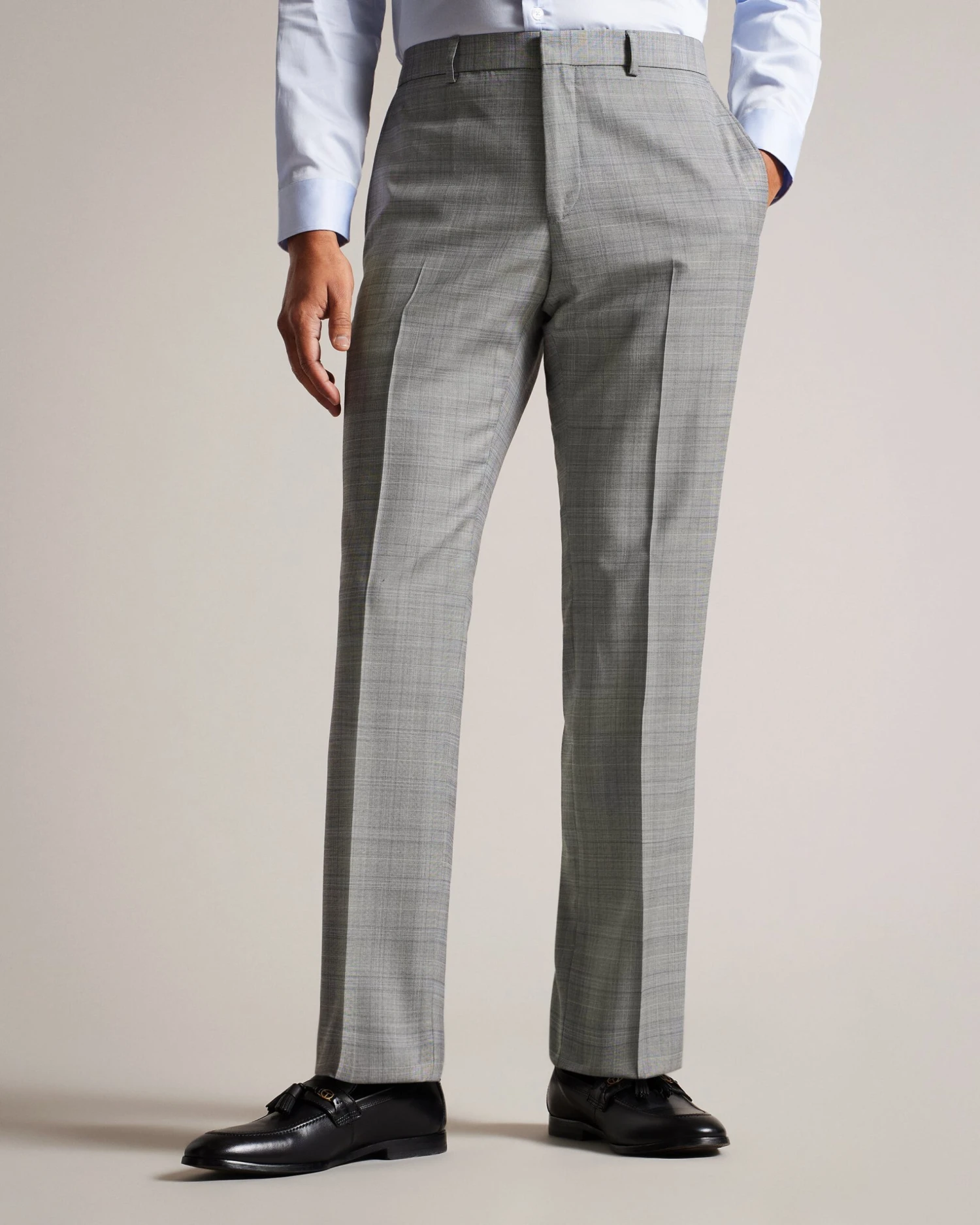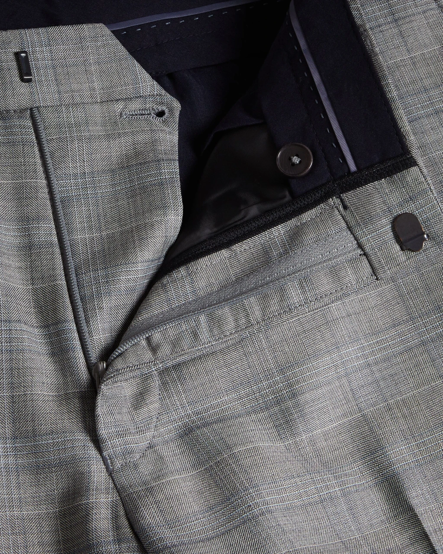 Trousers Check texture Zip and hook fastening Wool blend Belt loops Pockets Pranav is 6’1″ / 1.85m and wears Grey in 32 R