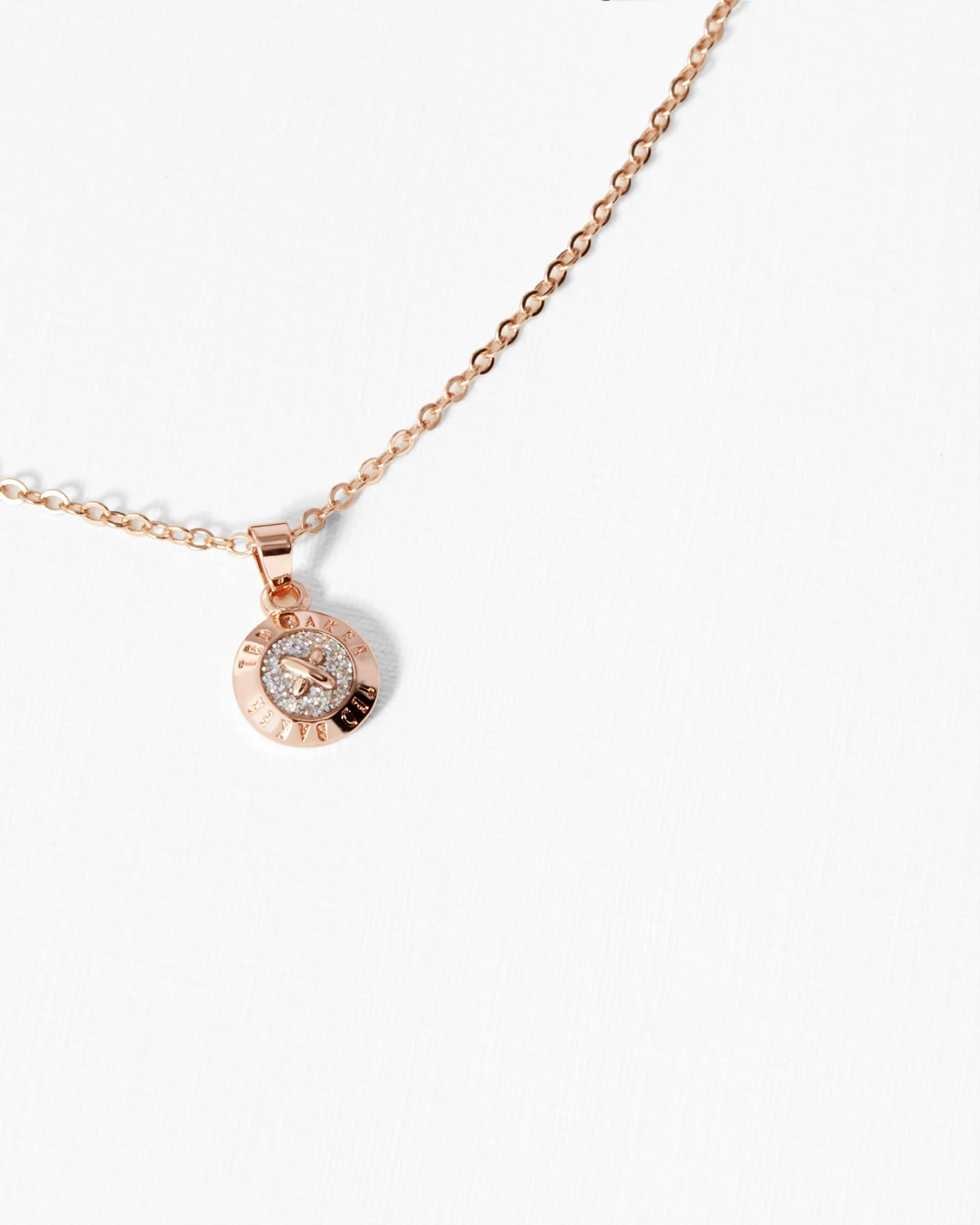 If you’re seeking the perfect finishing touch, the ELVINA necklace will press all the right style buttons. Designed with a delicate single button pendant and Ted Baker branding, it’ll complement any ensemble.