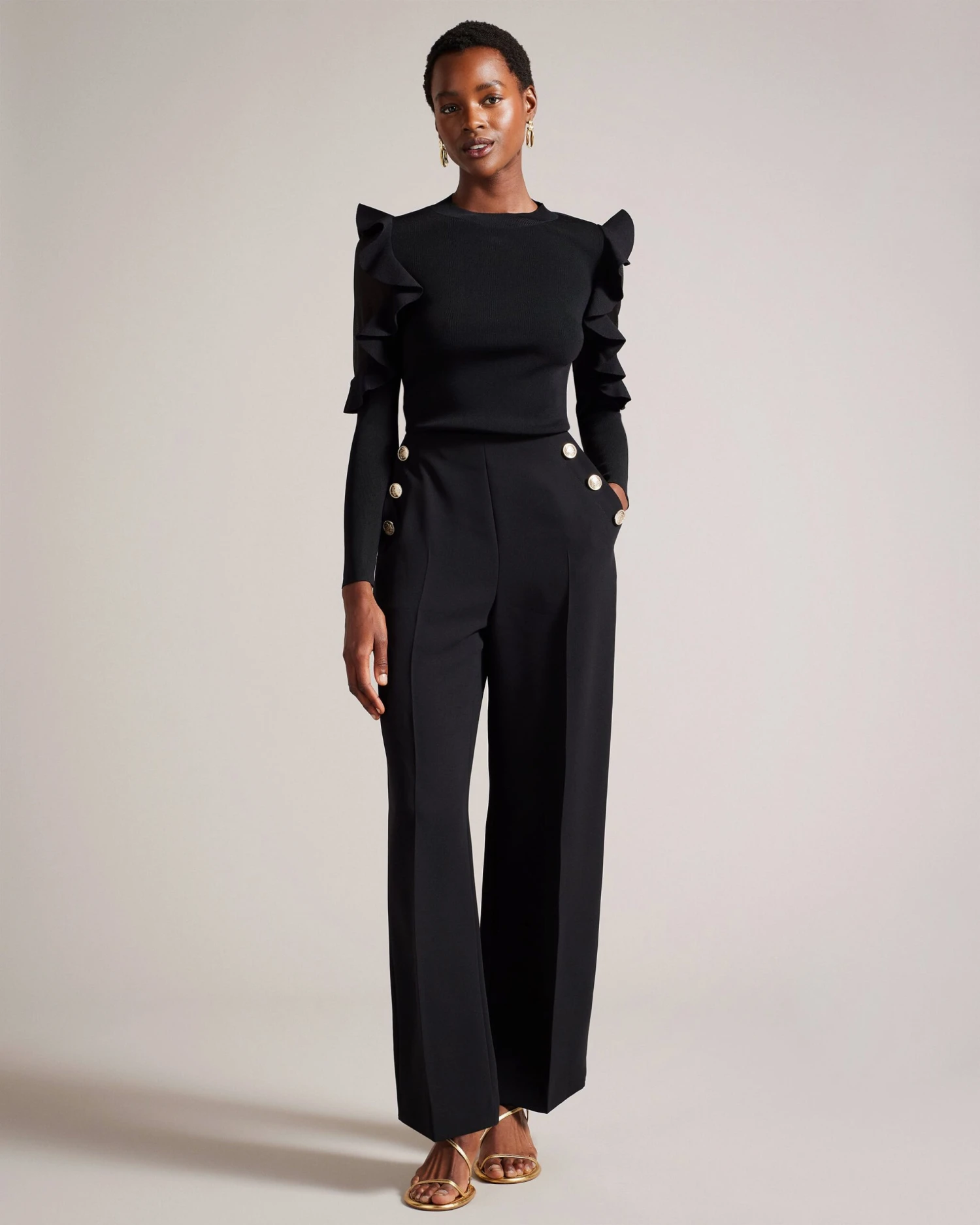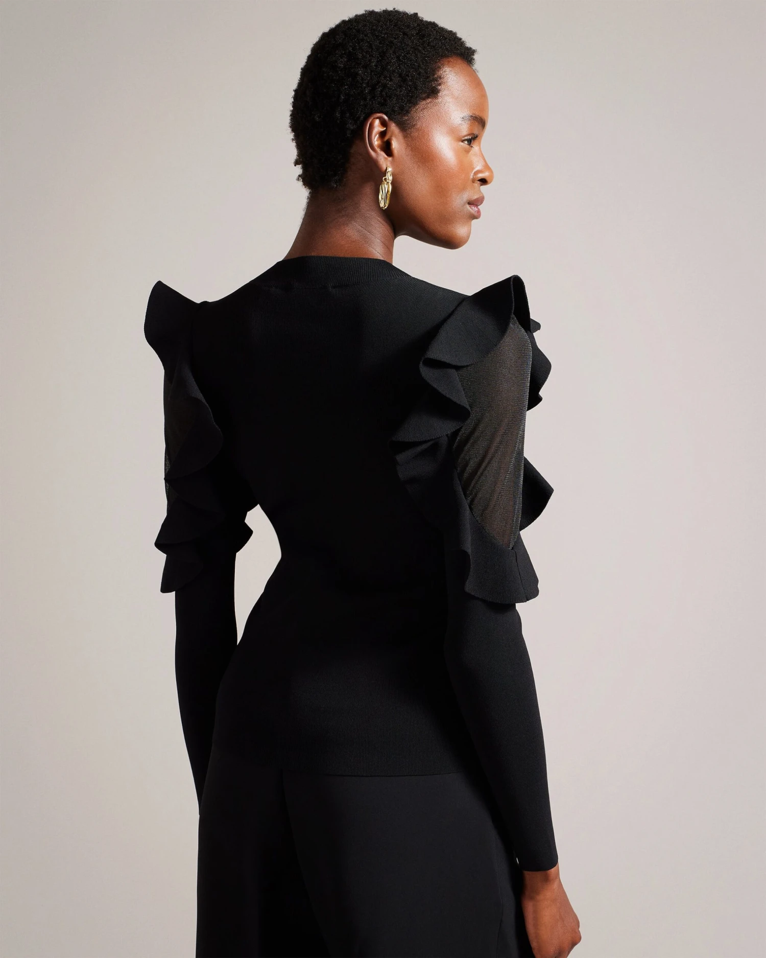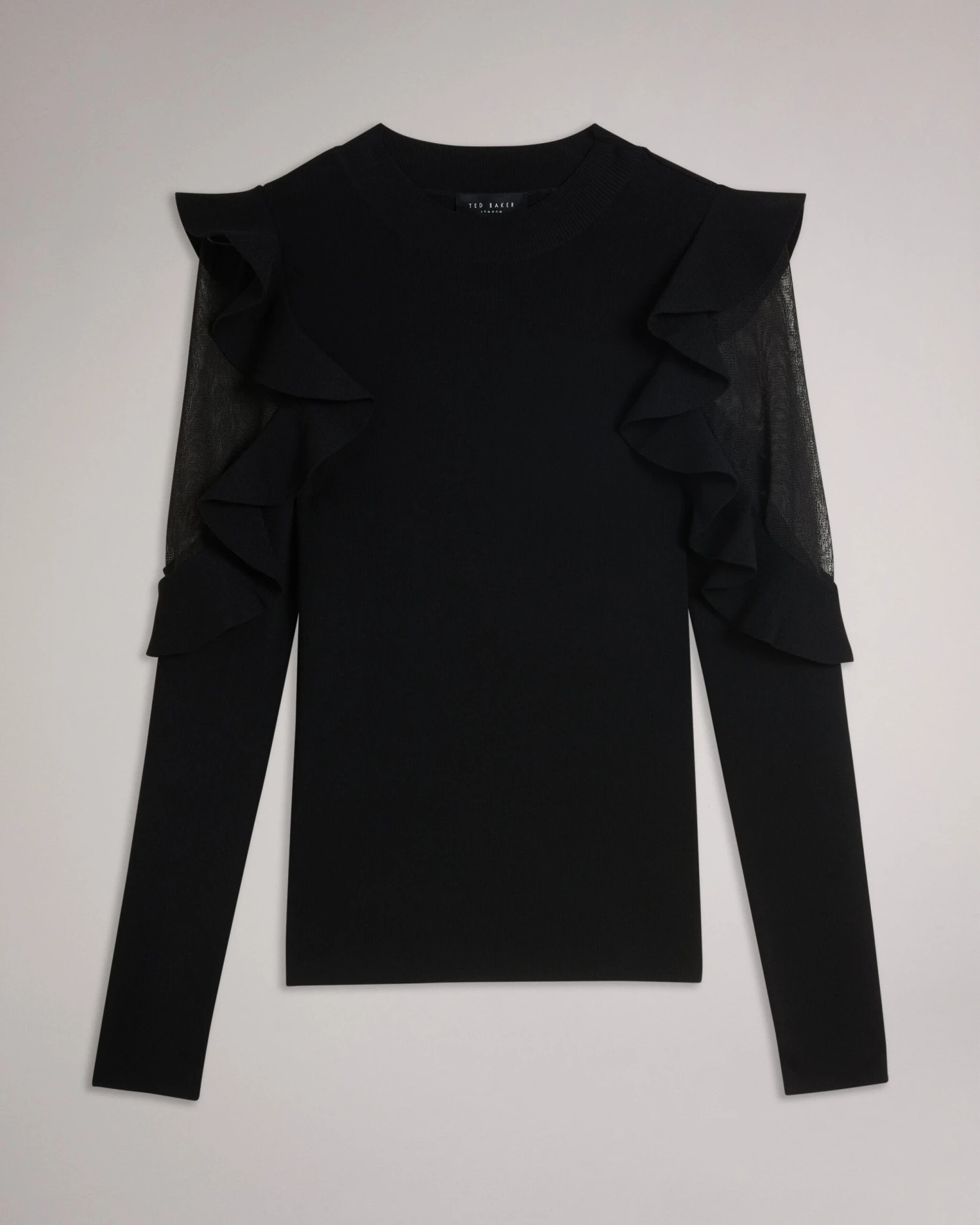 Fitted top Crew neck Long sleeves Frilled sleeve detail Mesh sleeve insert Magnolia branded detail