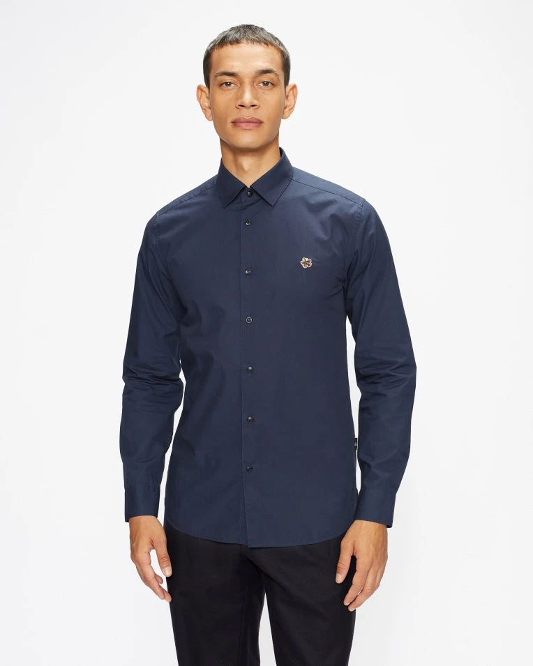 Keep it classic in FONIK, the 100% cotton shirt. Coming in a breezy long sleeve style, this shirt, made from 100% cotton, will keep you cool when summer weather comes bursting through those clouds. Embroidered with our classic Magnolia patch, this subtle detail elevates this shirt to new heights. A summer classic that you most certainly need in your wardrobe By buying cotton products from Ted Baker, you’re supporting responsible cotton production through the BETTER COTTON INITIATIVE.