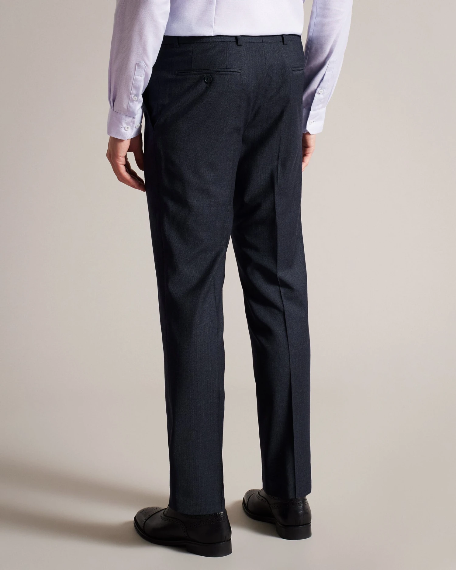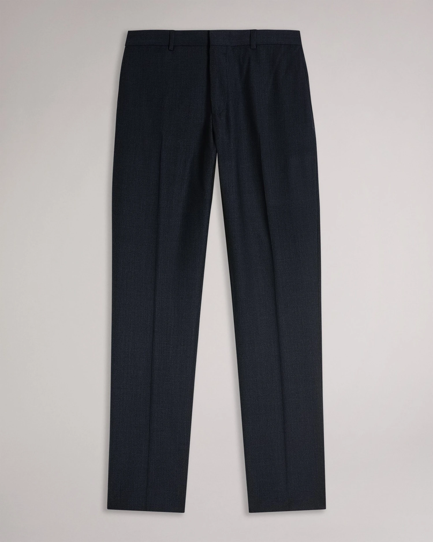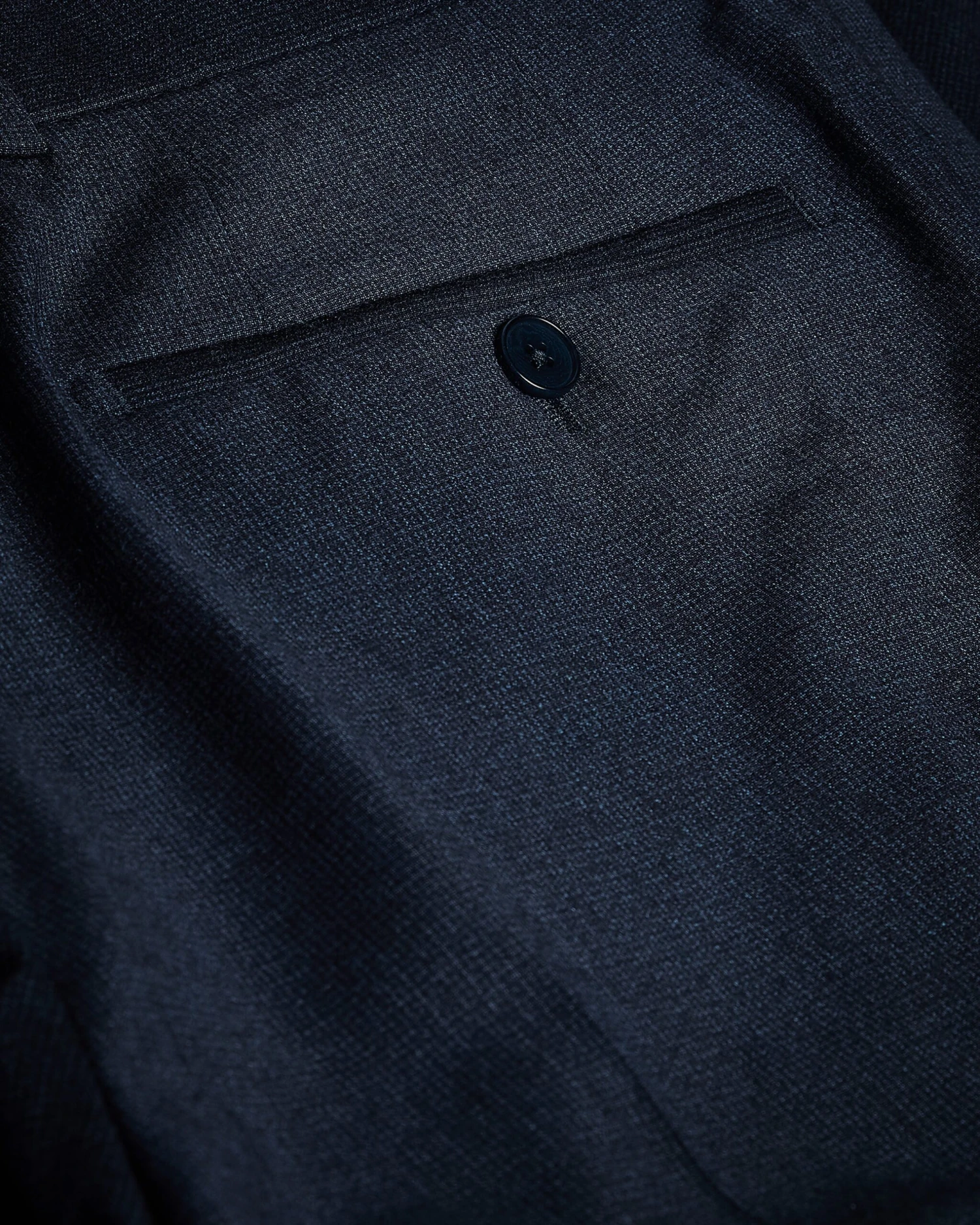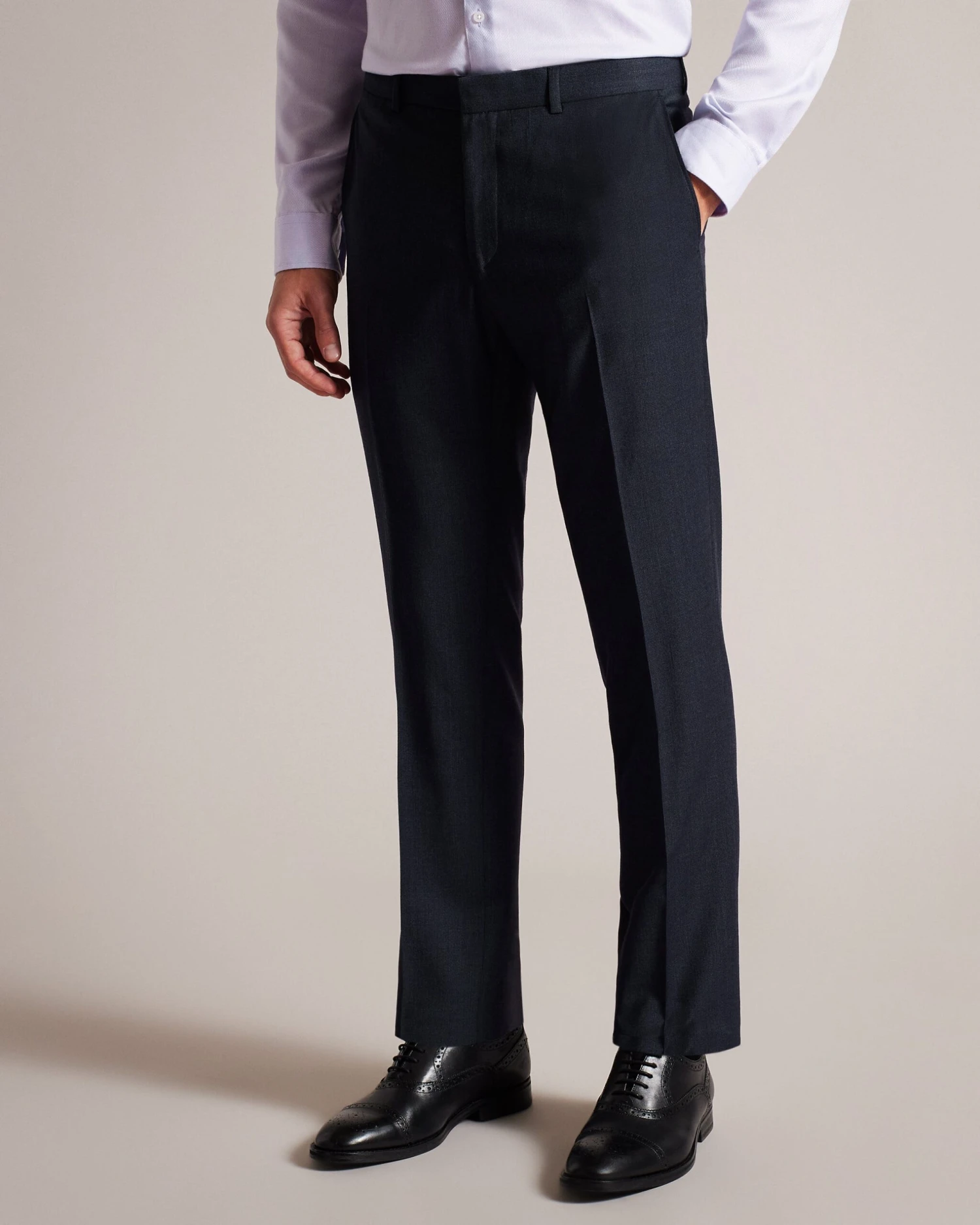 Suit trousers Puppytooth texture Wool blend Belt loops Pockets Tailored pleats Matching jacket: FORBYJS Tobias is 6’1″ / 1.86m and wears Navy in 32R