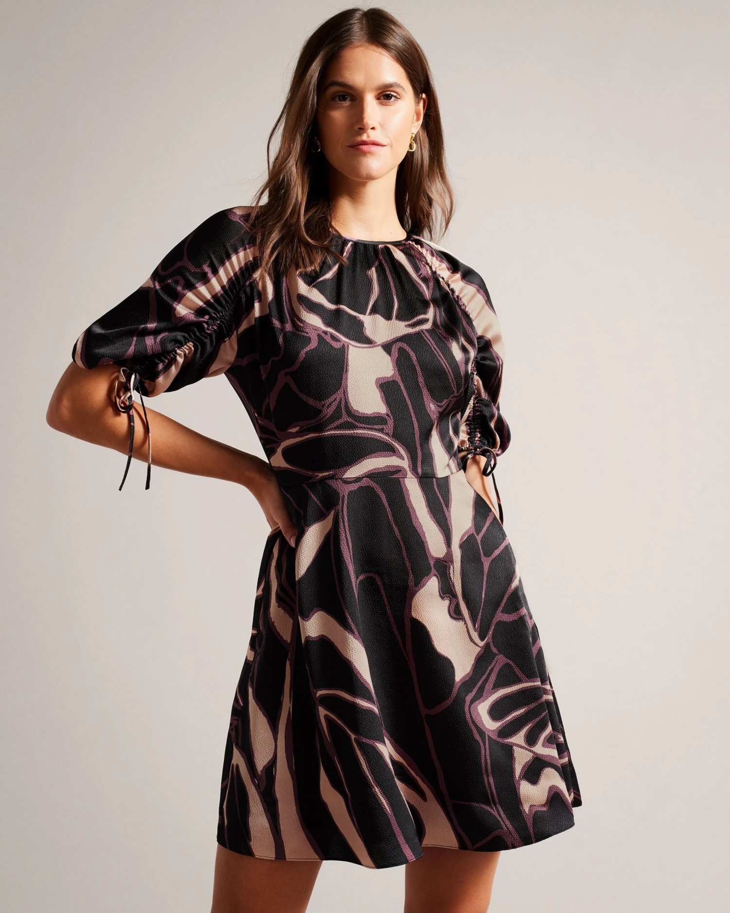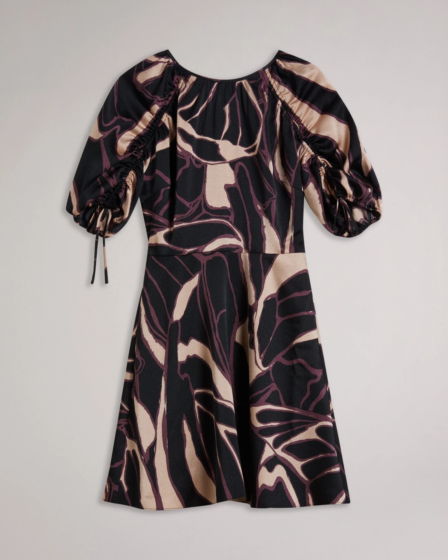 Feminine and flirty, GILLIAA is a must have mini for the holiday season. This party ready dress features a dancefloor-worthy fit and flare cut with puff sleeves and an abstract print for added drama. Dreamy.