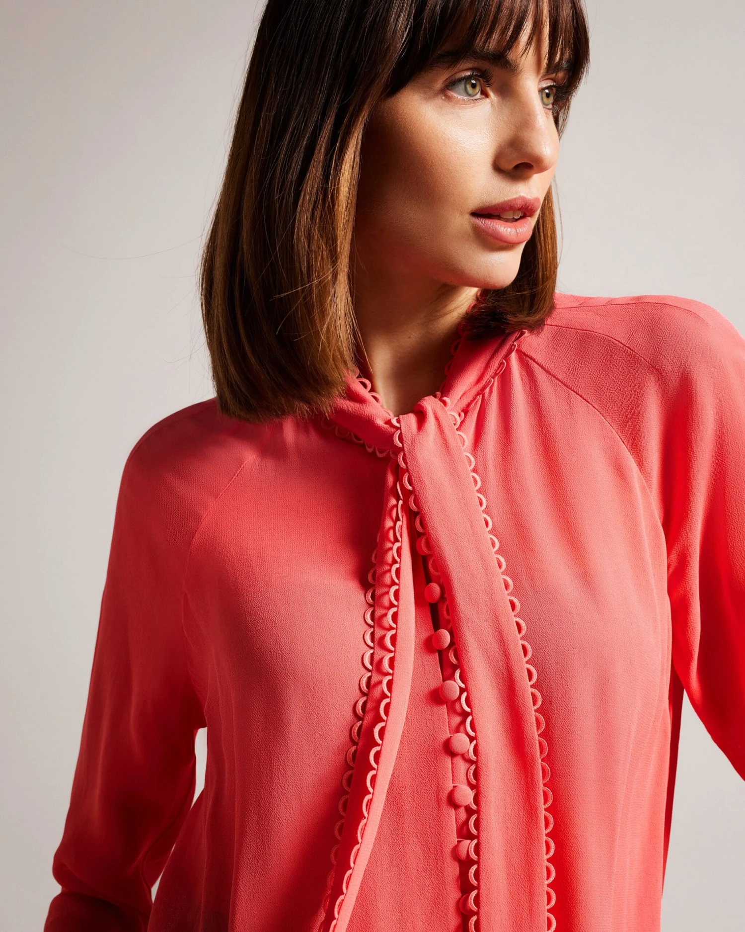 JULINAA is a lightweight, feminine layer that transitions easily from day to evening. This lightweight blouse pairs wonderfully with wide-leg trousers and heels for a polished office look—or switch it up for jeans and sandals on a sunny weekend getaway.