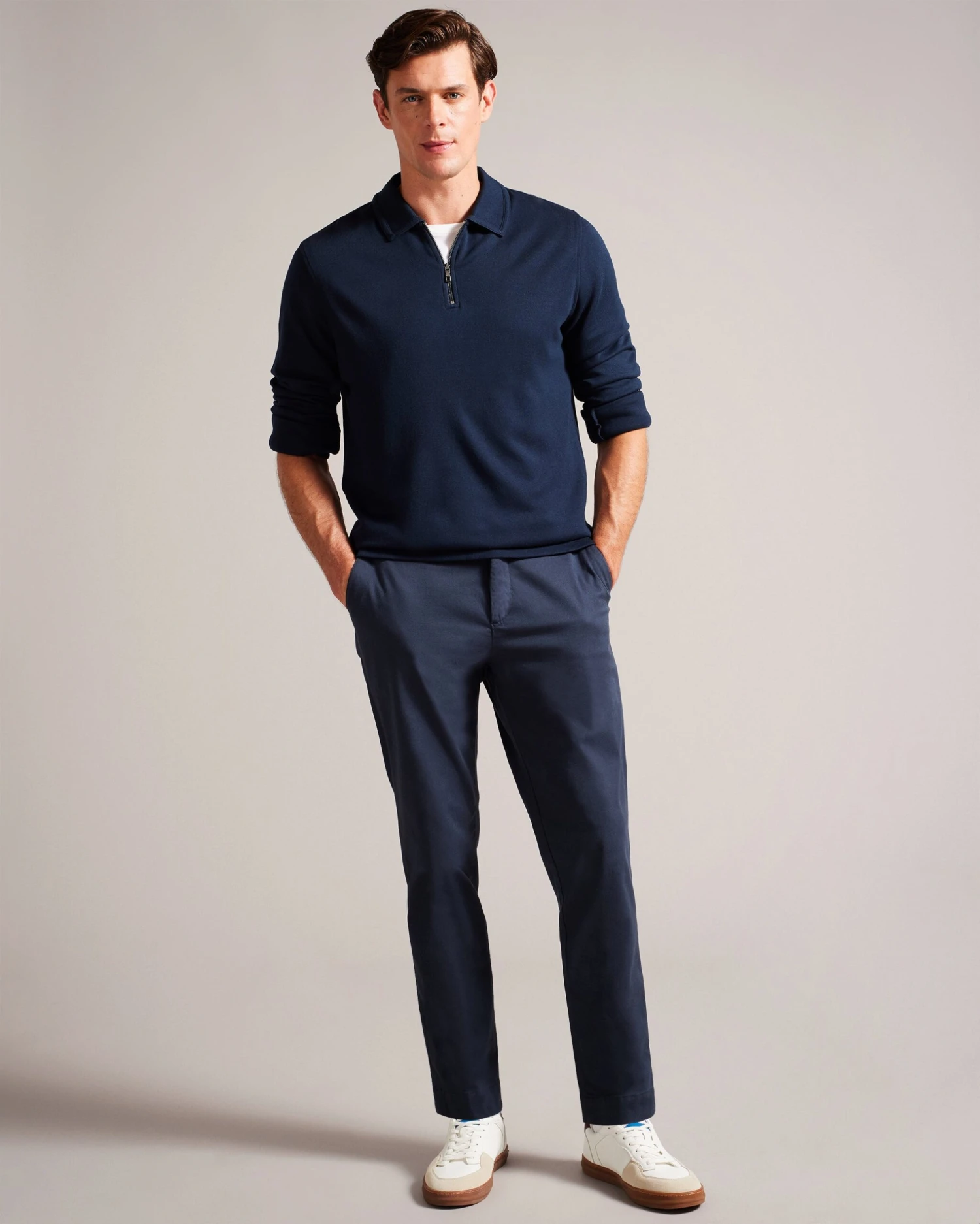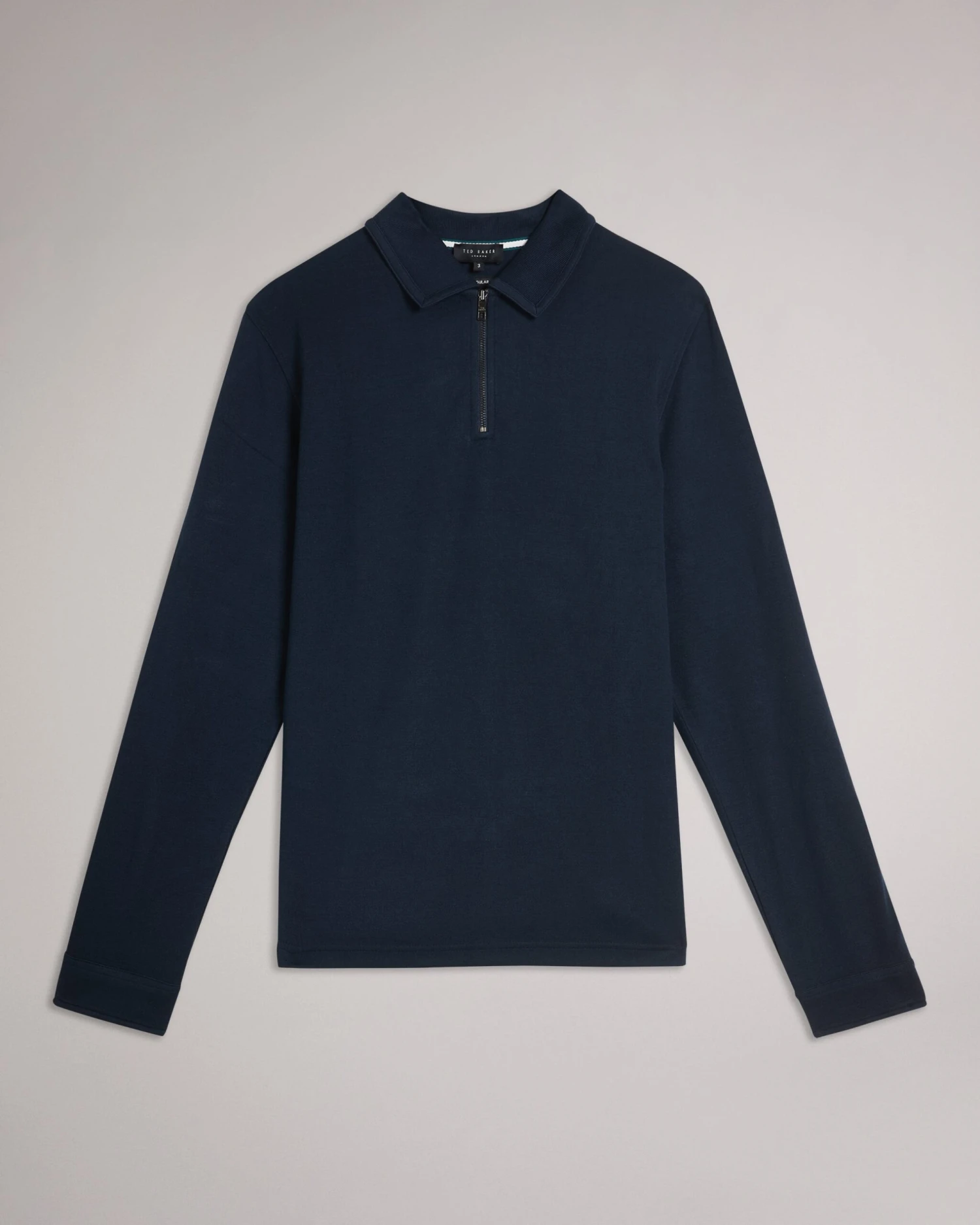 Polo shirt Long sleeves Modal blend Classic collar Zip placket Magnolia label Edward is 6’3″ / 1.90m and wears Natural in a Ted size 3