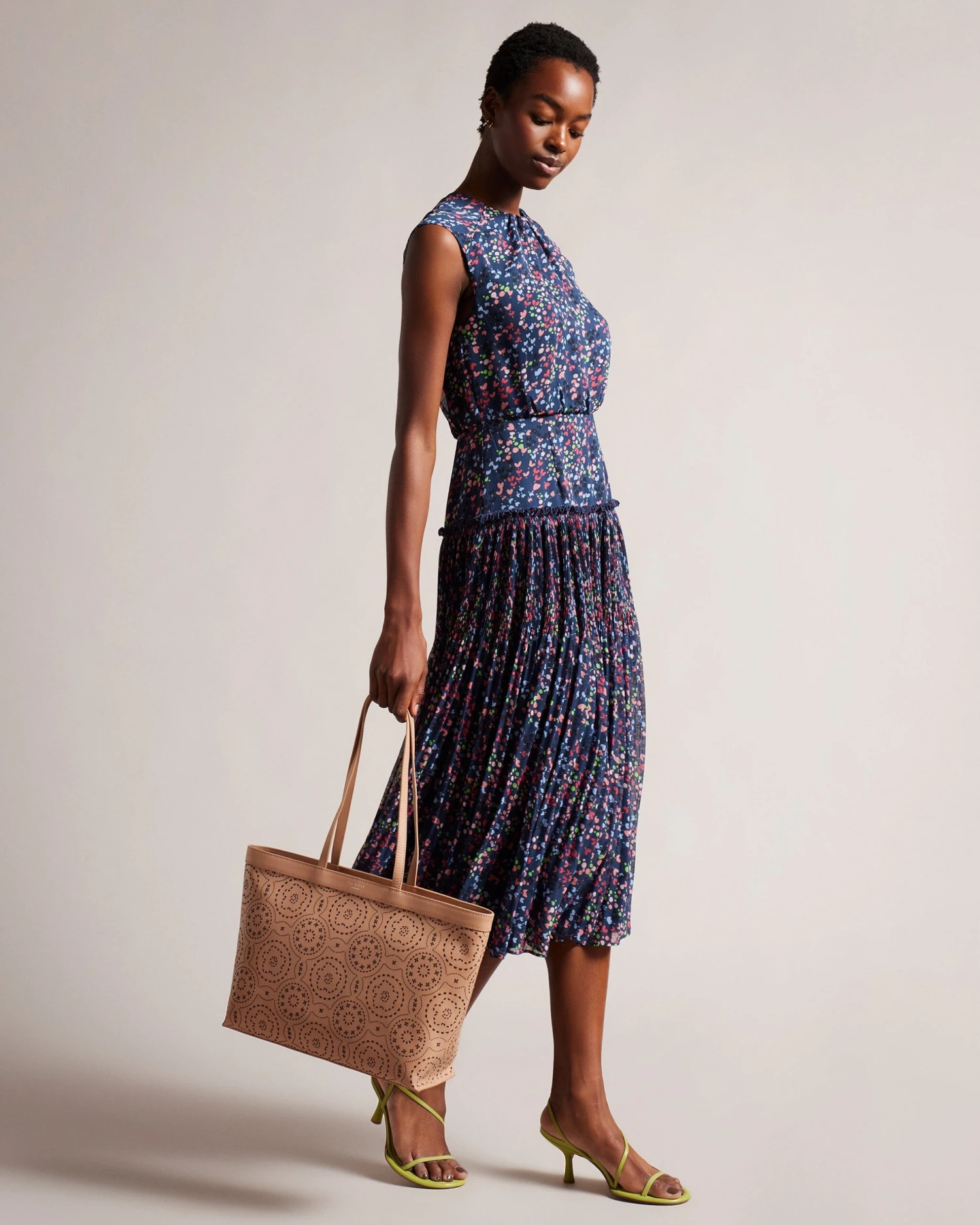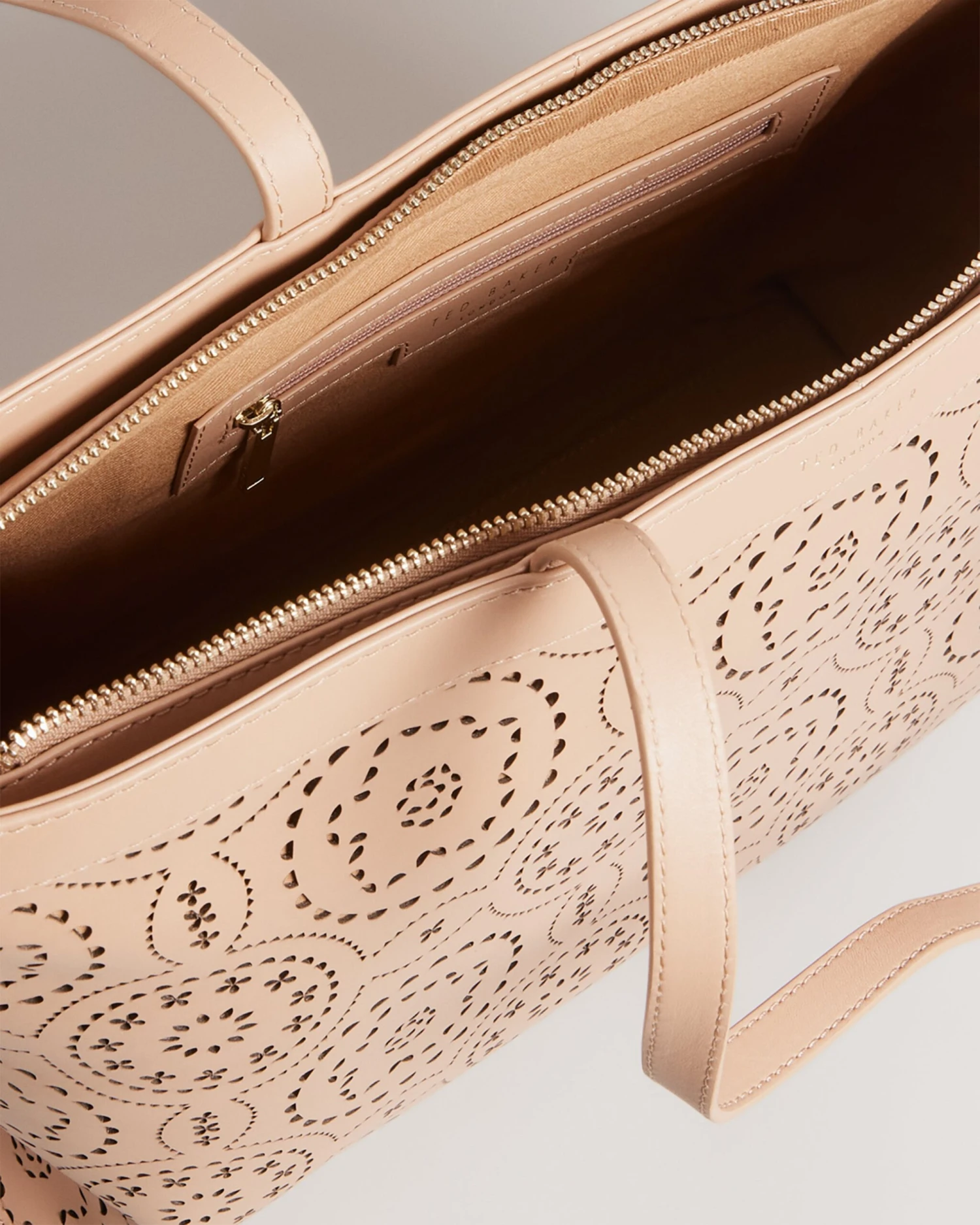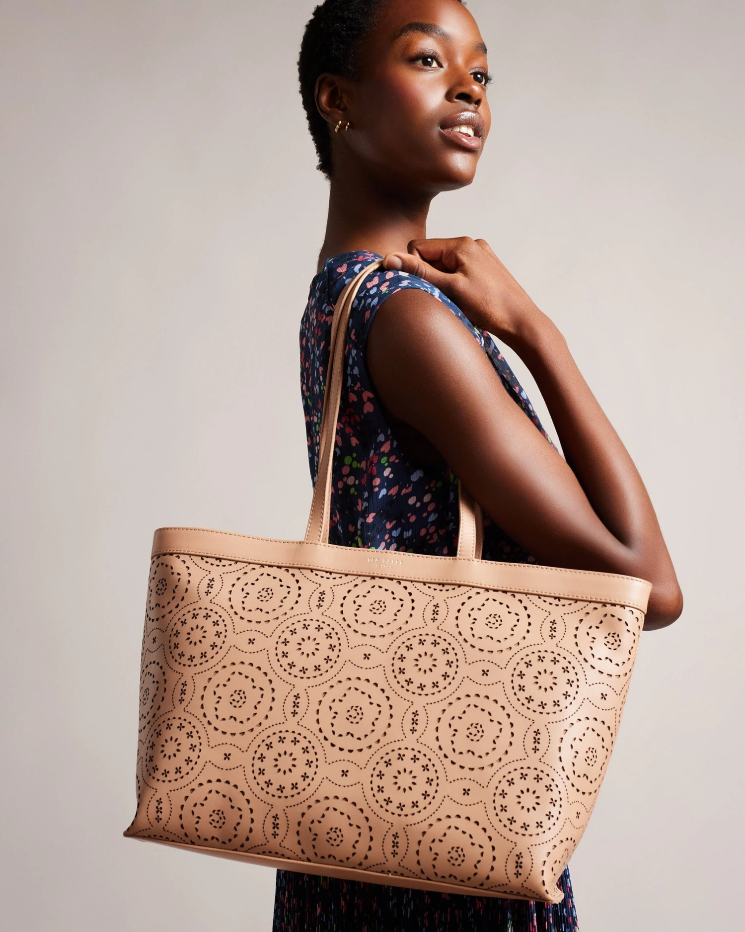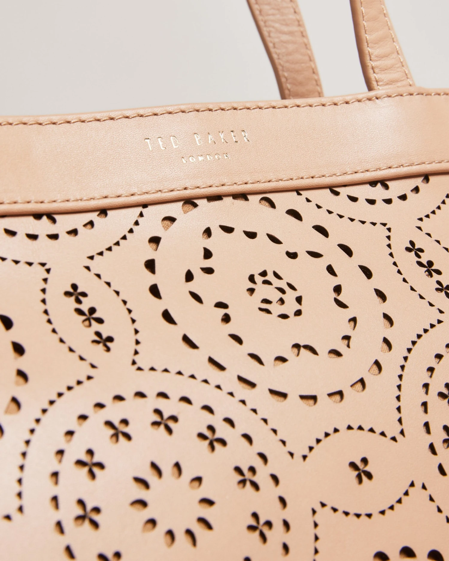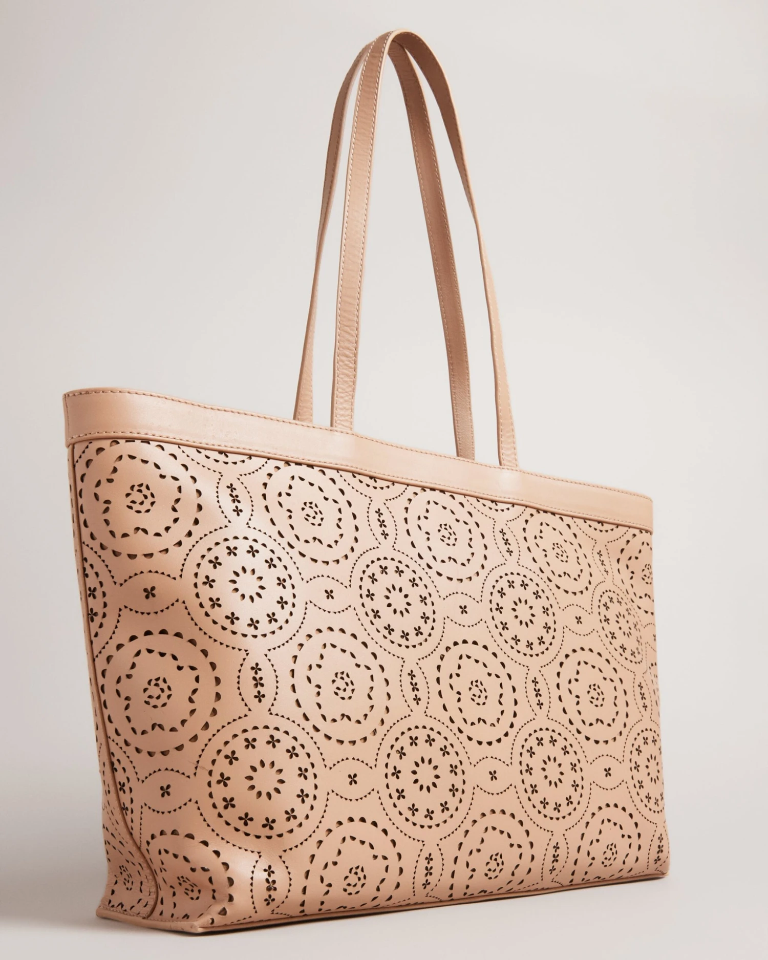 Tote bag Laser cut design Two top handles Top grain leather Internal pocket Dimensions: 11cm x 28cm x 36cm