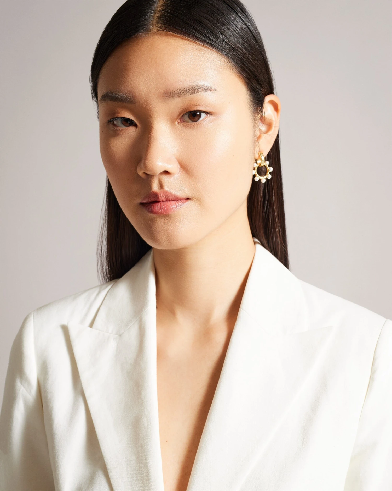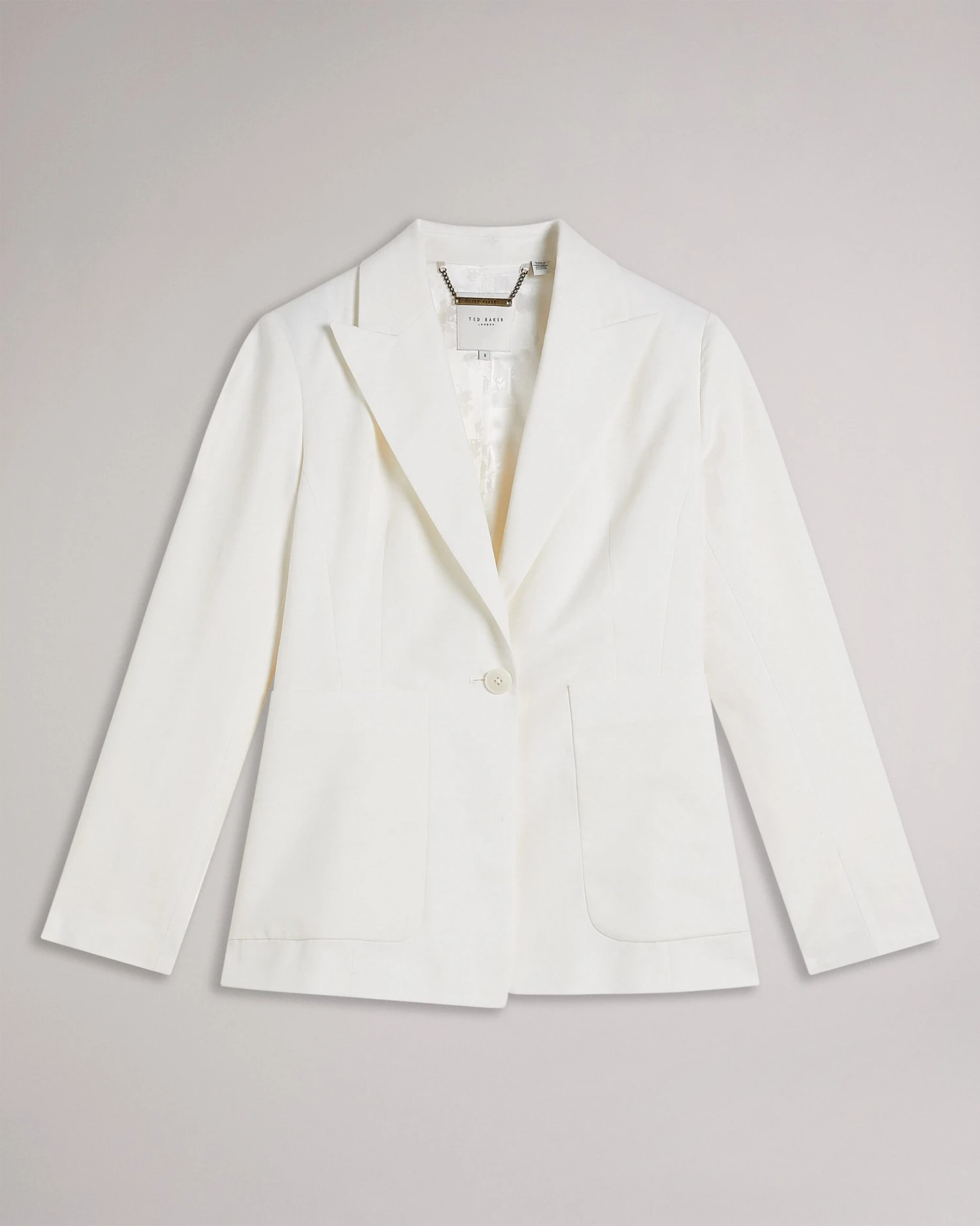 Blazer Cotton and linen Peaked lapel Single breasted Button fastening Hyunser is 5’10.5″ / 1.79m and wears White in a Ted size 1