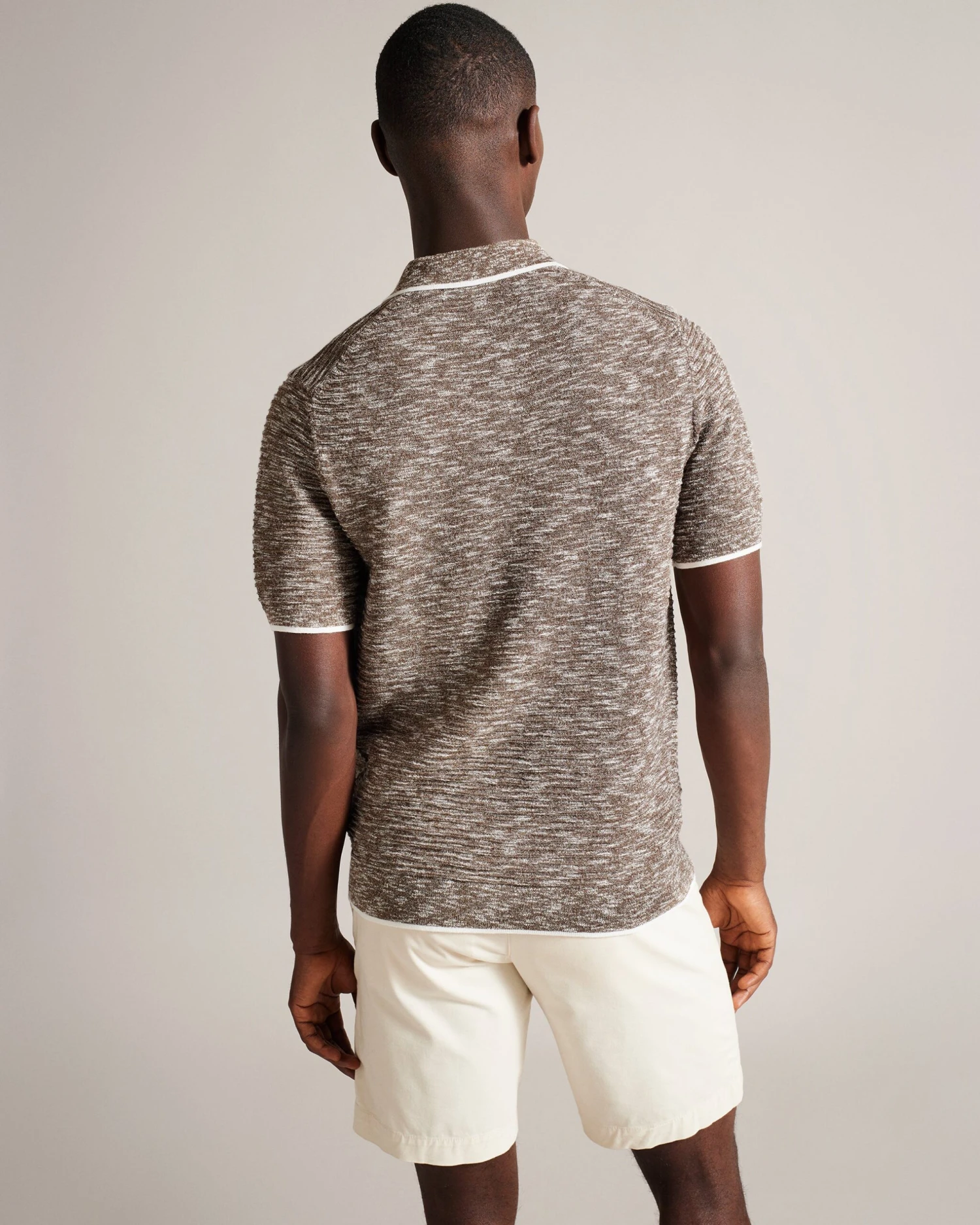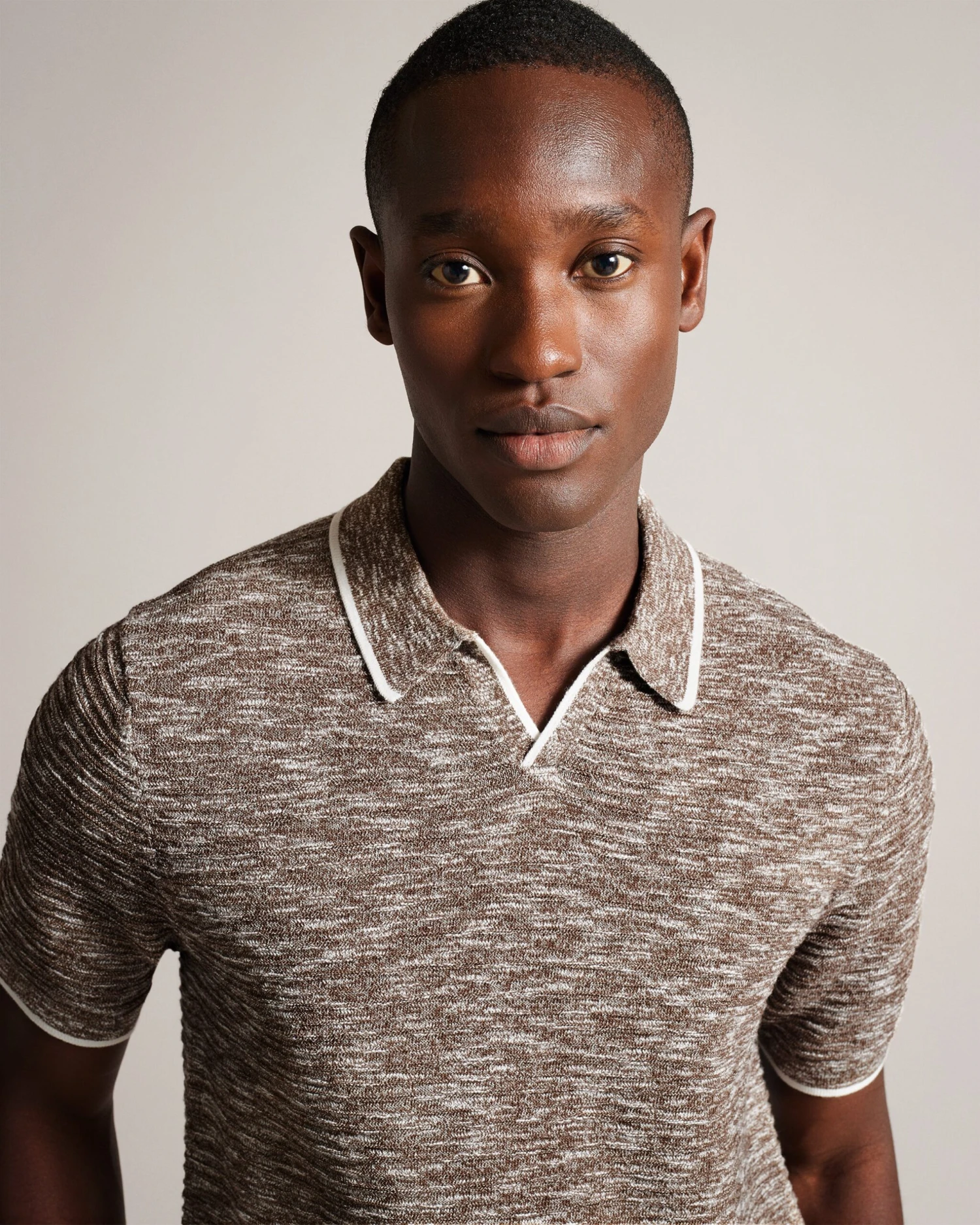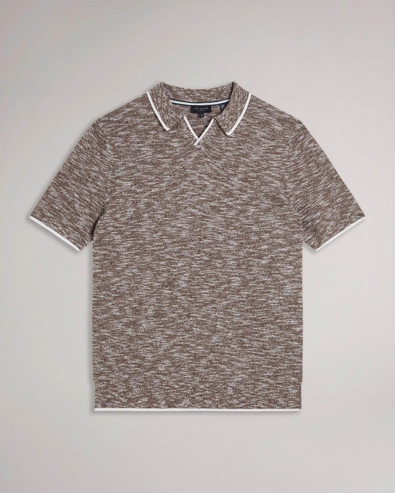 Polo shirt Open collar Cotton blend Marled texture Contrast trims Short sleeved Mukasa is 6’2.5″ / 1.89m and wears Dark Blue in a Ted size 3