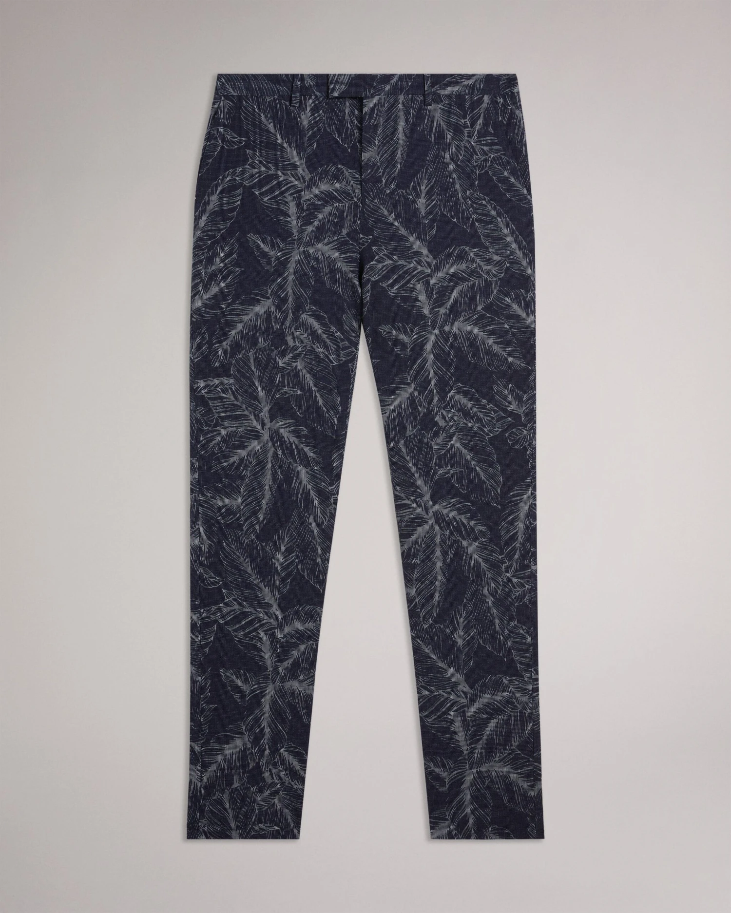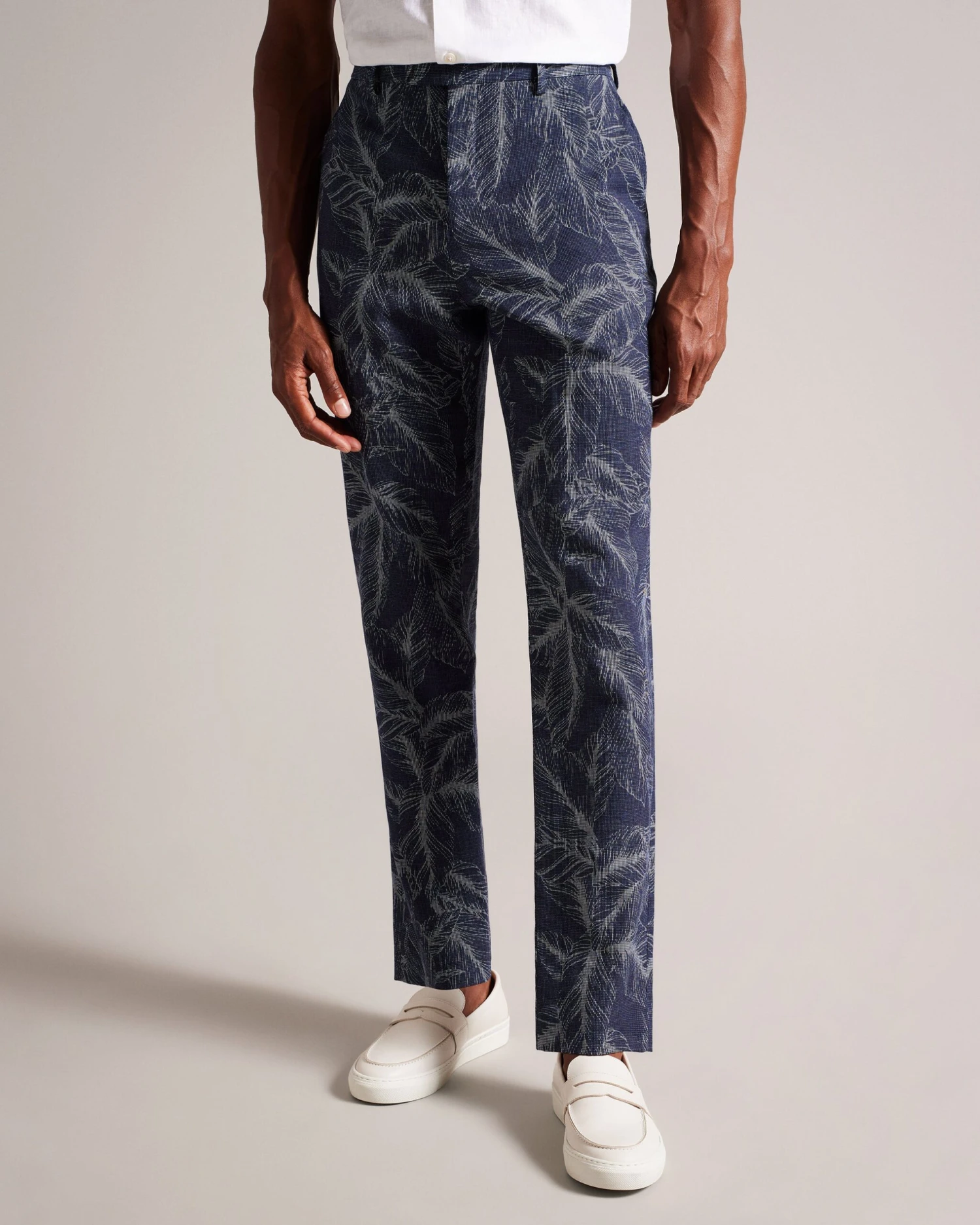 Suit trousers Cotton and linen Leaf design Slim fit Belt loops Concealed fastening Pockets