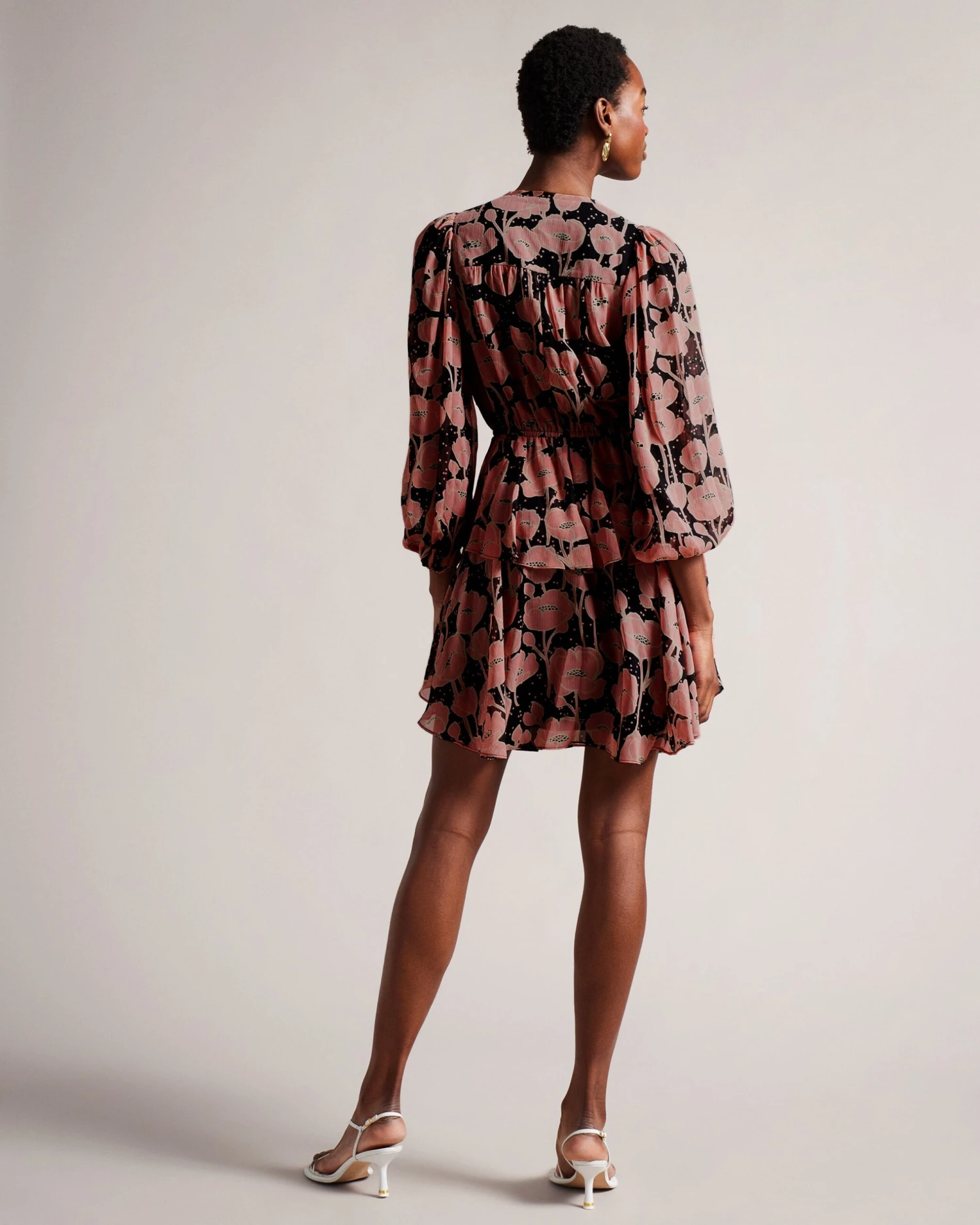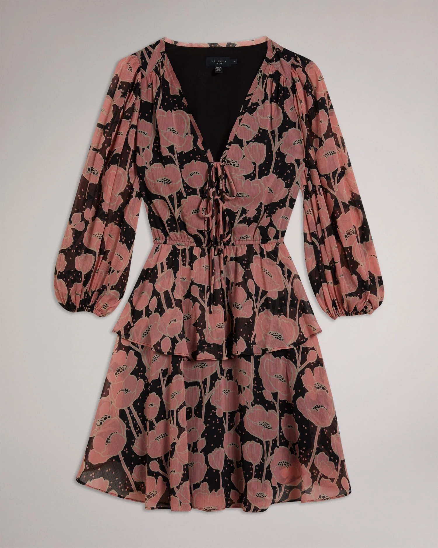A little flirty and a whole lot stylish, PRIANA is a must-have for your wardrobe. Featuring a poppy print, tiered skirt, and long puff sleeves, this dress makes a statement.