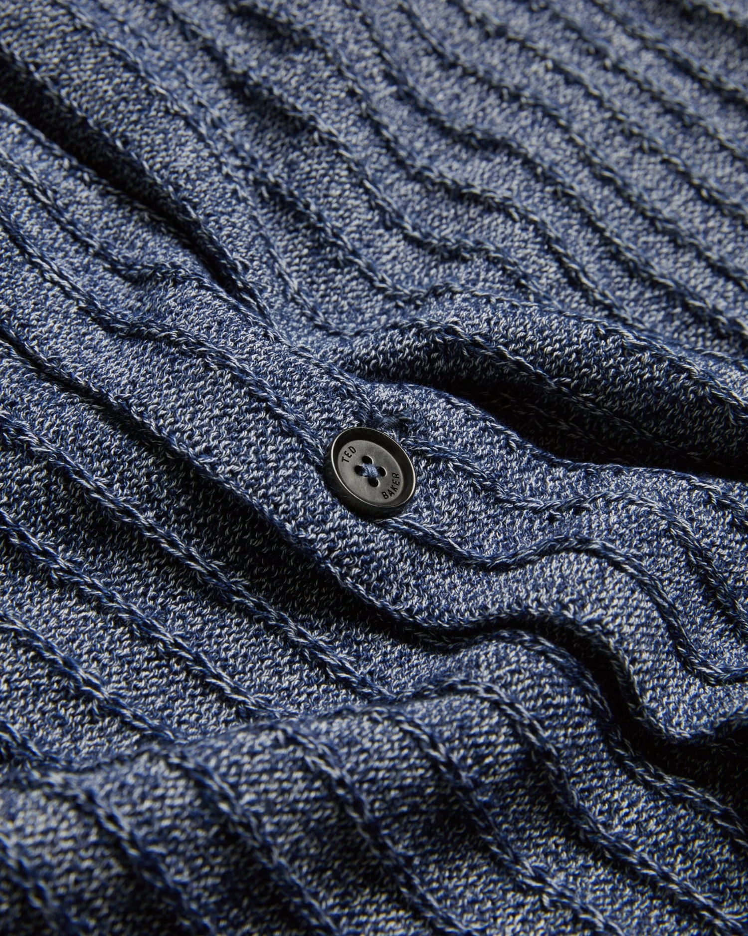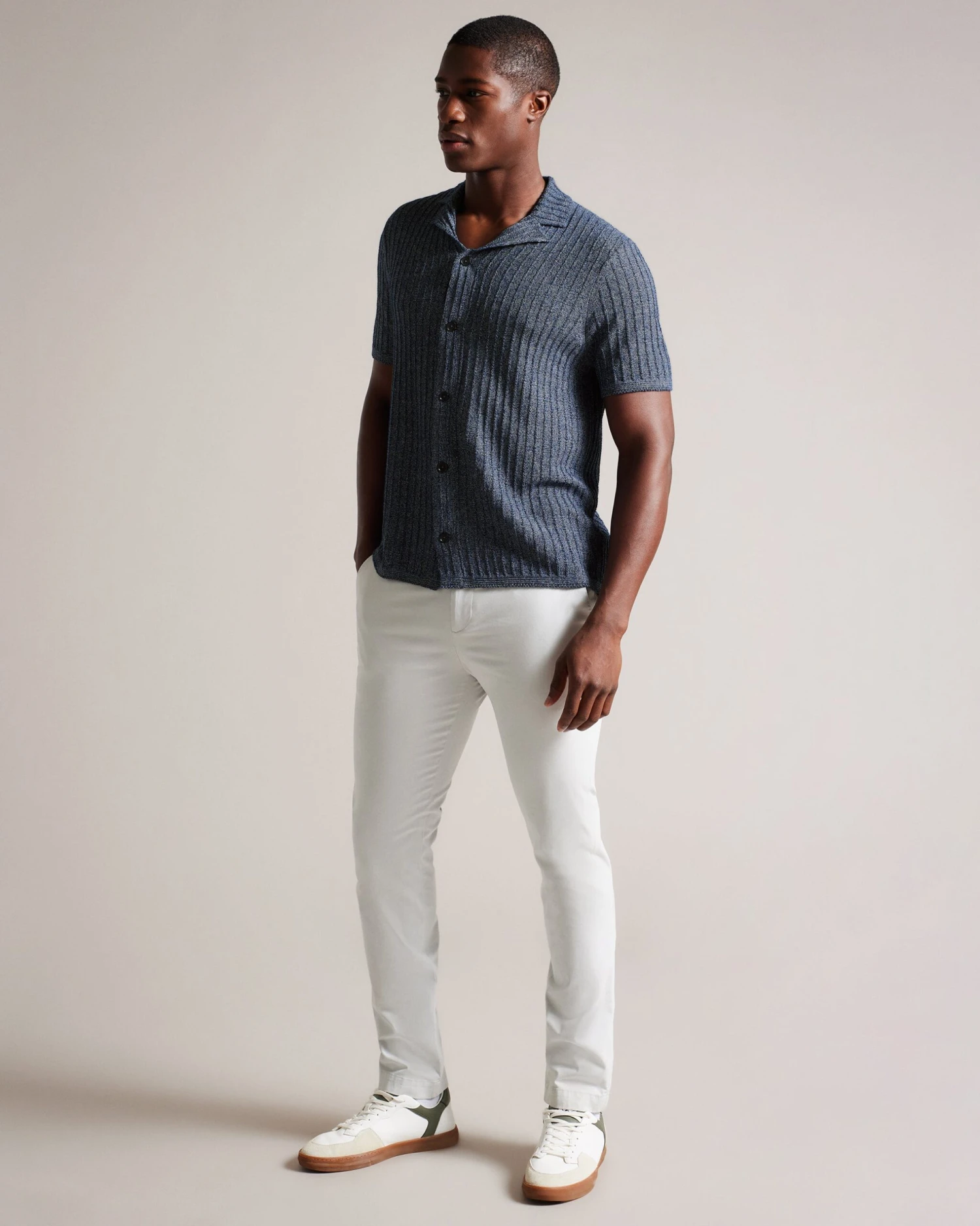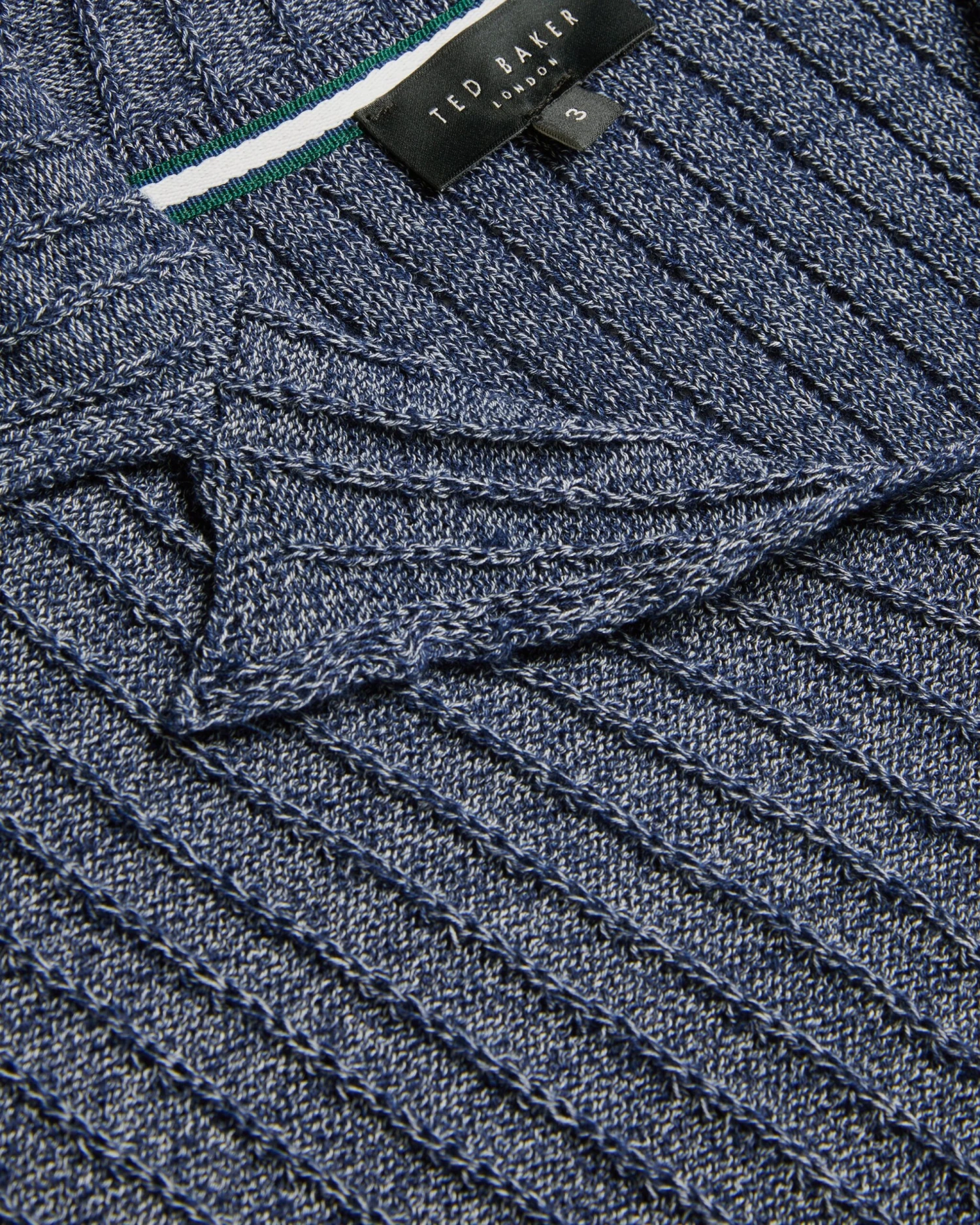 Shirt Short sleeved Modal blend Striped knit Cuban collar Button fastening Joseph is 6’1″ / 1.85m and wears Navy in a Ted size 3