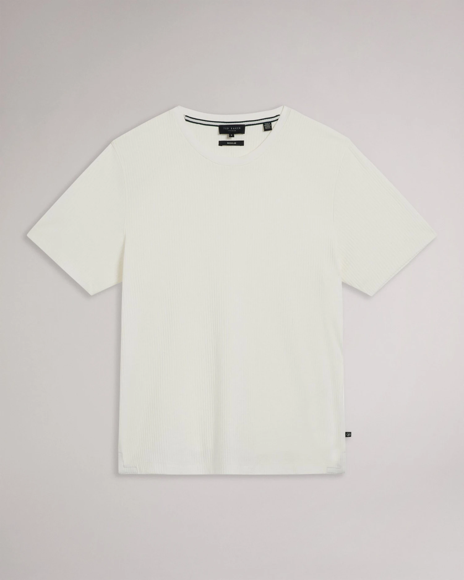 T-shirt Regular fit Short sleeved 100% cotton Crew neck Striped texture Joseph is 6’1″ / 1.85m and wears White in a Ted size 3