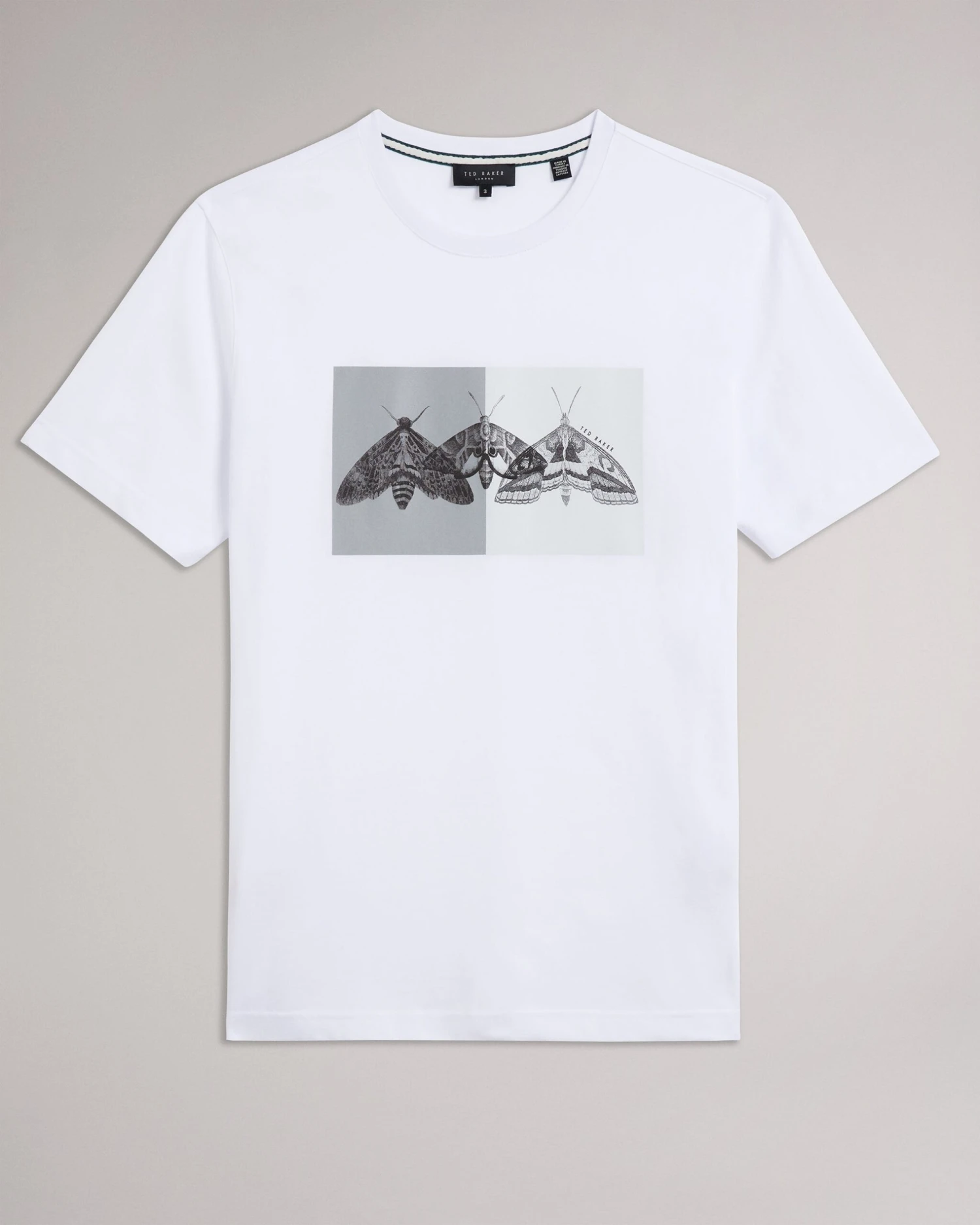 T-shirt Moth graphic 100% cotton Short sleeved Crew neck Regular fit Tobias is 6’1″ / 1.86m and wears White in a Ted size 3