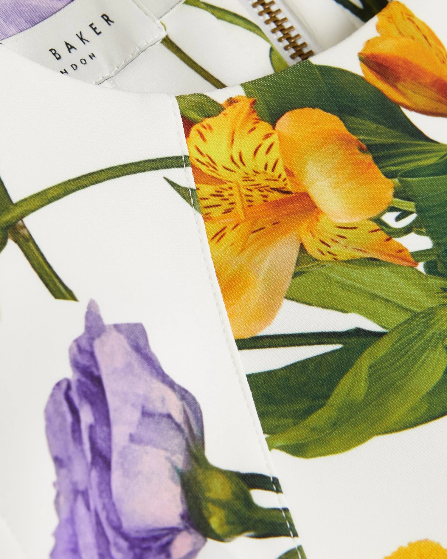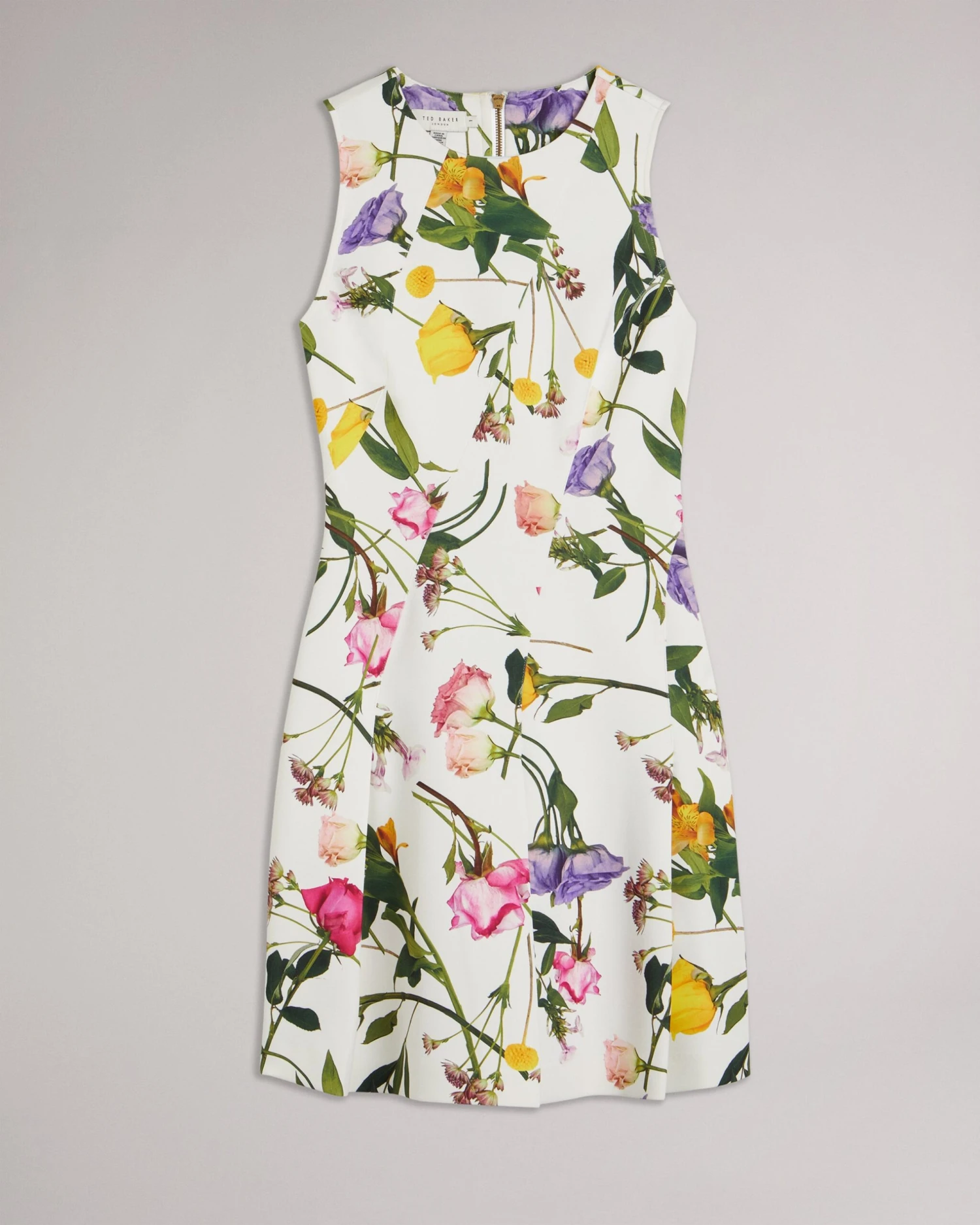 Skater dress Mini length Asymmetric panels Scattered bouquet print Sleeveless Crew neck Zip fastening Silvia is 5’11” / 1.8m and wears White in a Ted size 1