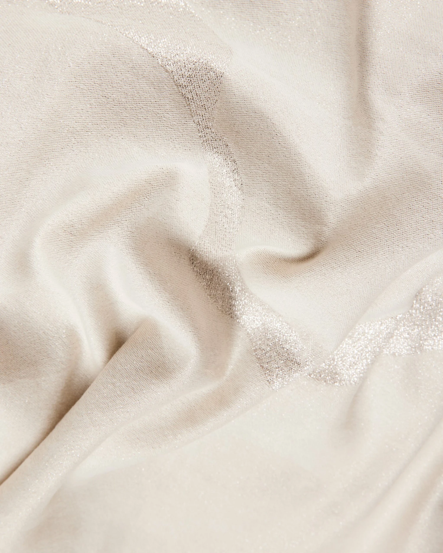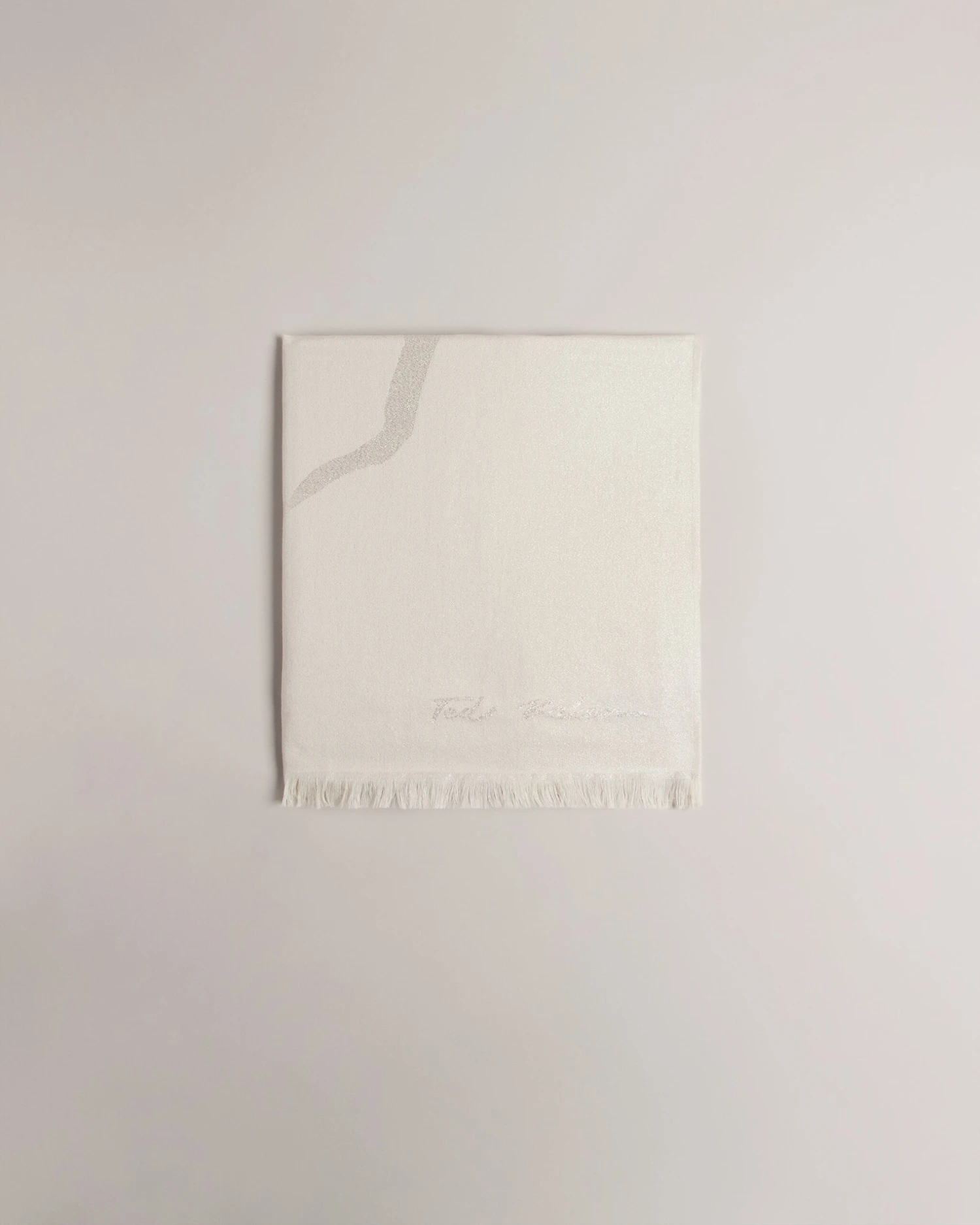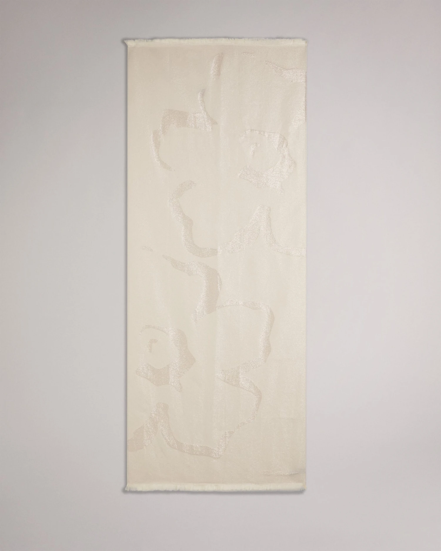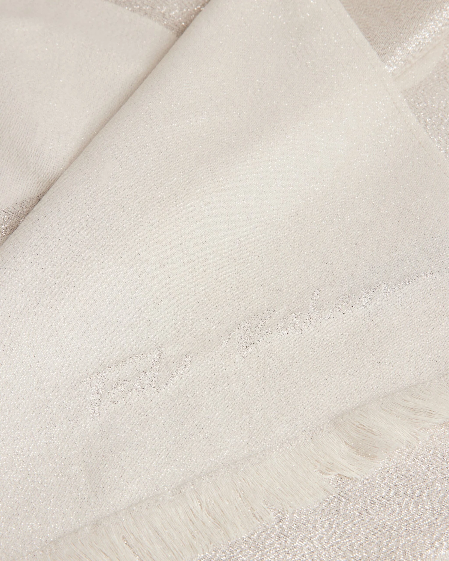 Scarf Metallic magnolia design Fringed edge Logo detail