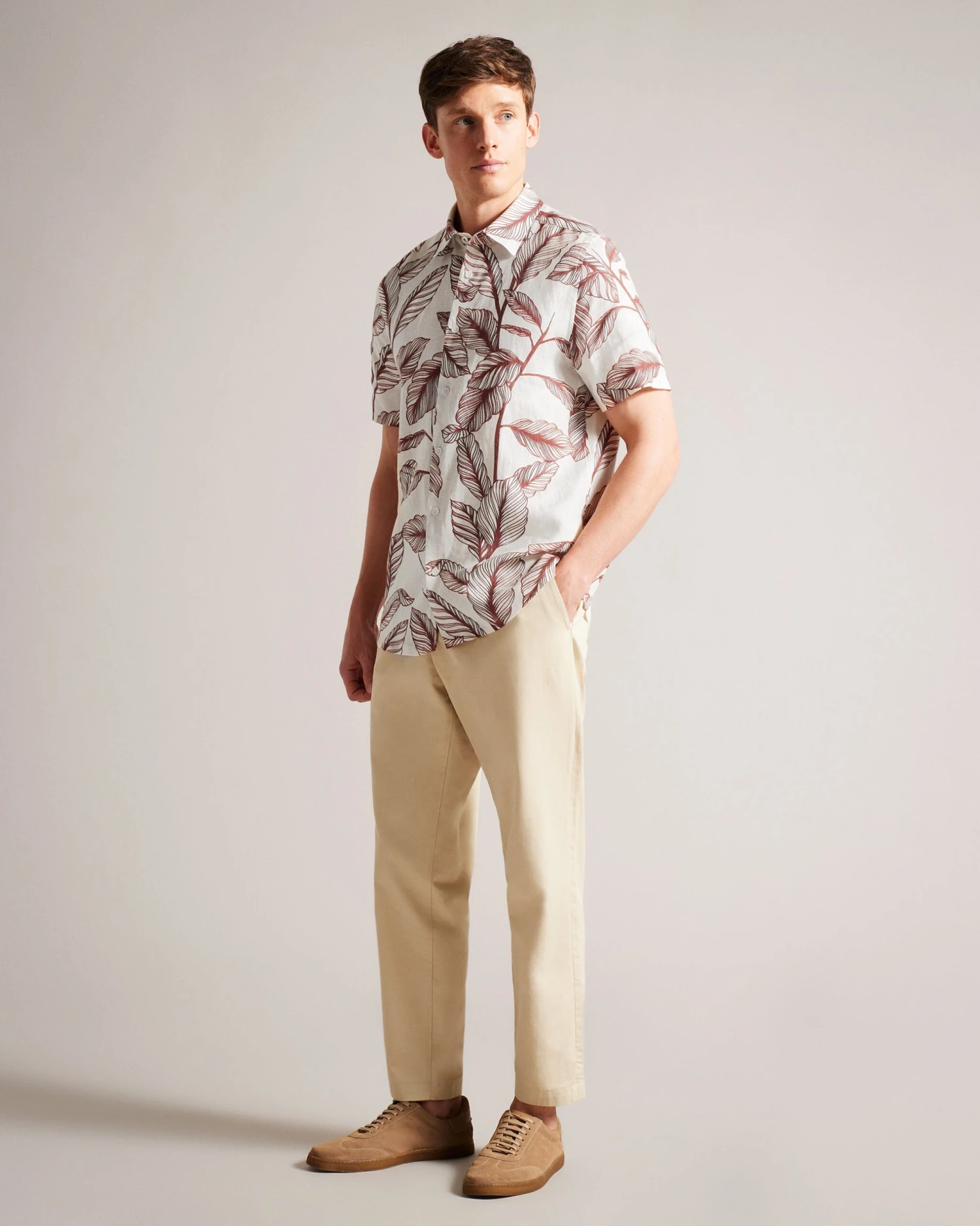Upgrade your summer wardrobe with our TAGUS button-up shirt, crafted from 100% breathable linen in a stylish leaf print. A short-sleeved design and classic collar make it the perfect choice for staying cool and looking sharp, whether you’re heading to the office or out for drinks with friends.