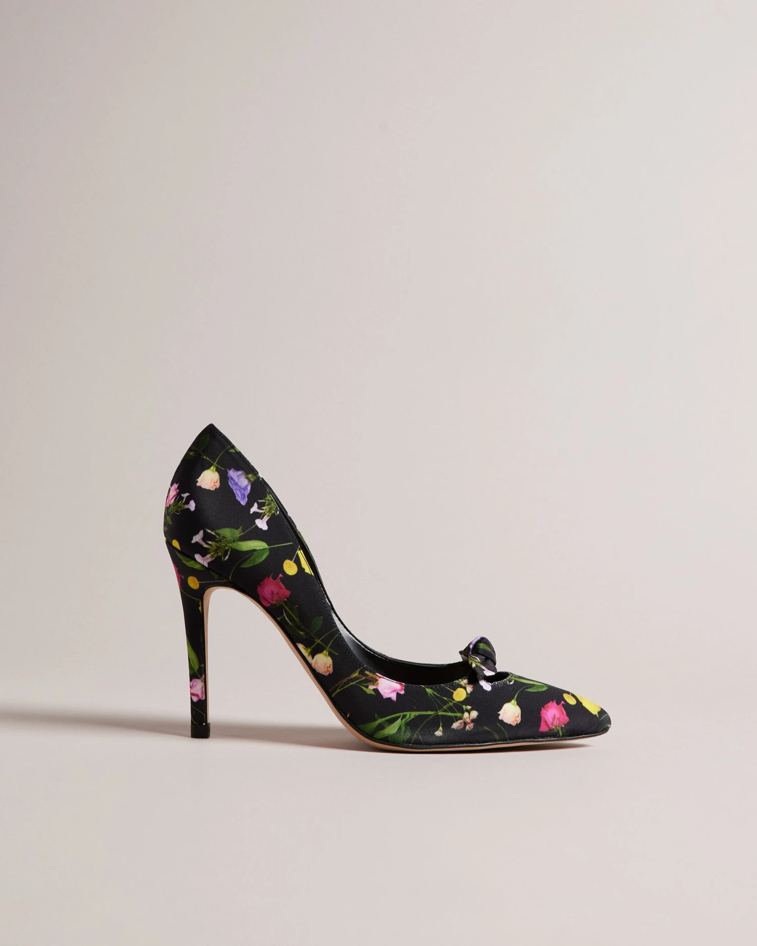 Step into spring with the beautiful TELINI court heels. Their scattered floral print will bring a touch of whimsy to any outfit, while the pointed toe and bow embellishment keep things classic and sophisticated. These heels are the perfect finishing touch for any special occasion or just to add a pop of colour to your wardrobe.