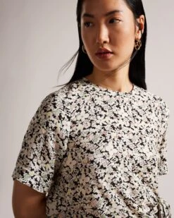 Mini dress Asymmetric tiered skirt Sleeveless Neck tie Devoré floral design Gathered neckline Jara is 5’10.5″ / 1.79cm and wears Bright Blue in a Ted size 1