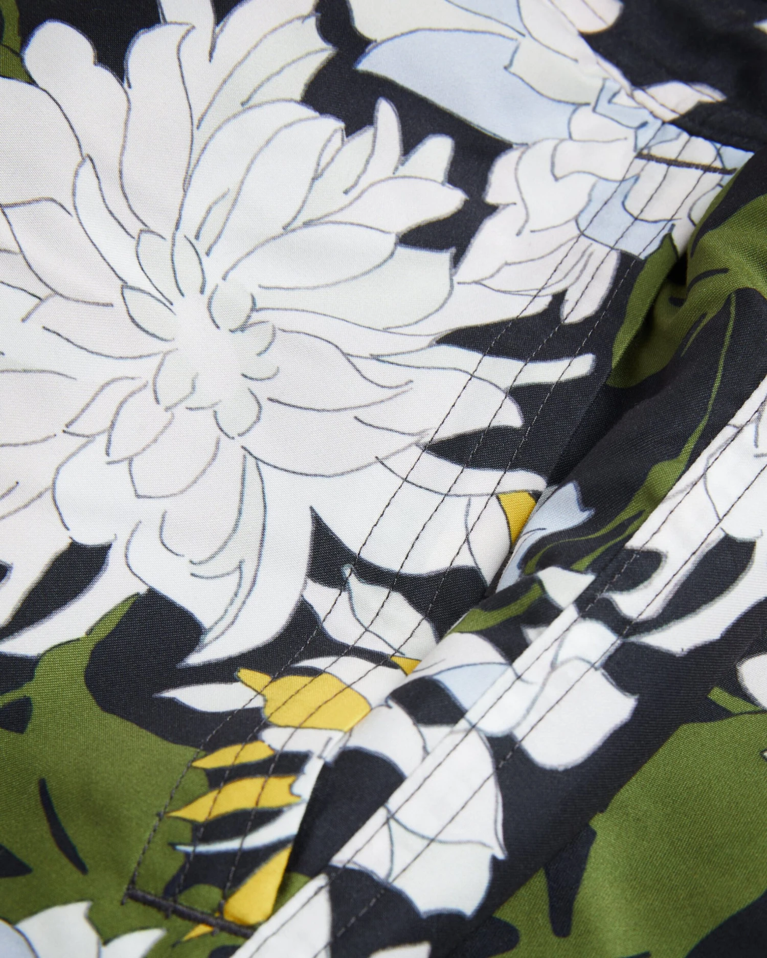 Swim shorts Chrysanthemum print Knee length Drawstring waist Pockets
