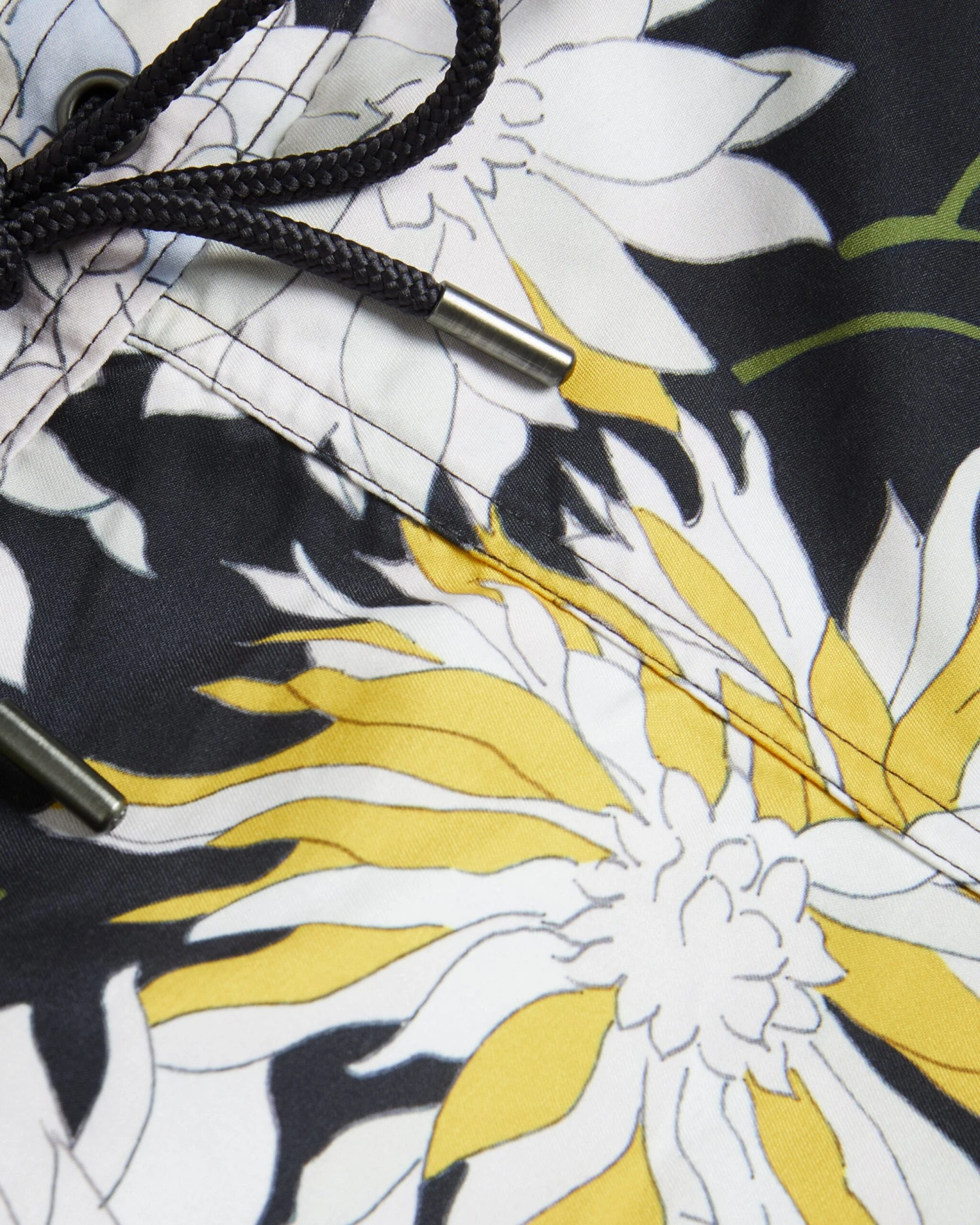 Dive into summer style with our modern VESEL swim shorts, featuring our bold chrysanthemum print that will make a statement by the pool. A drawstring waist and knee length keeps things casual.