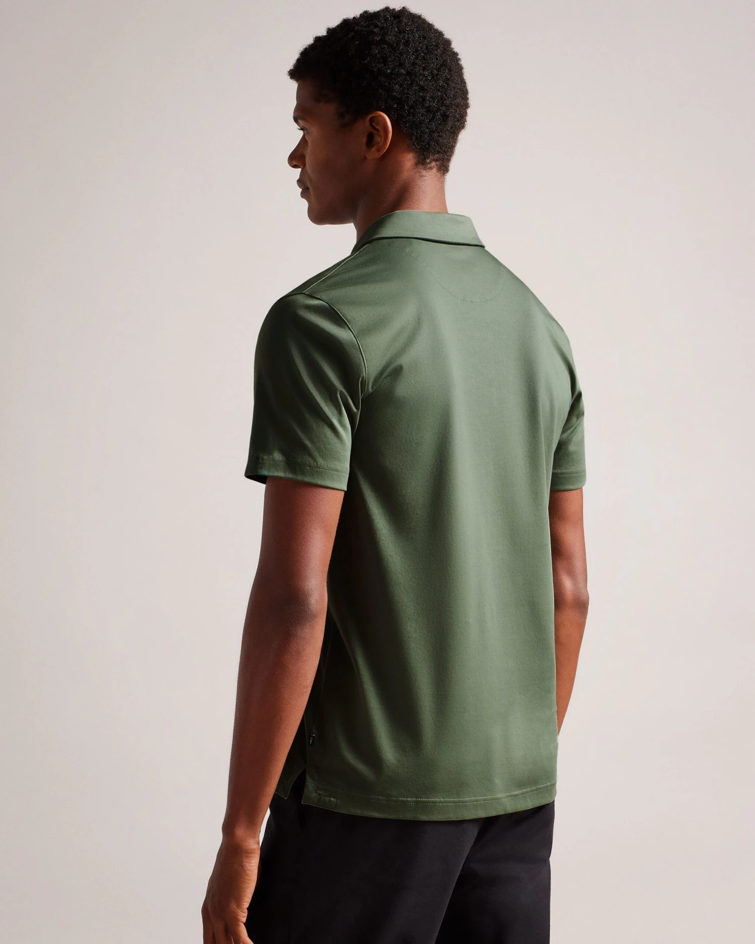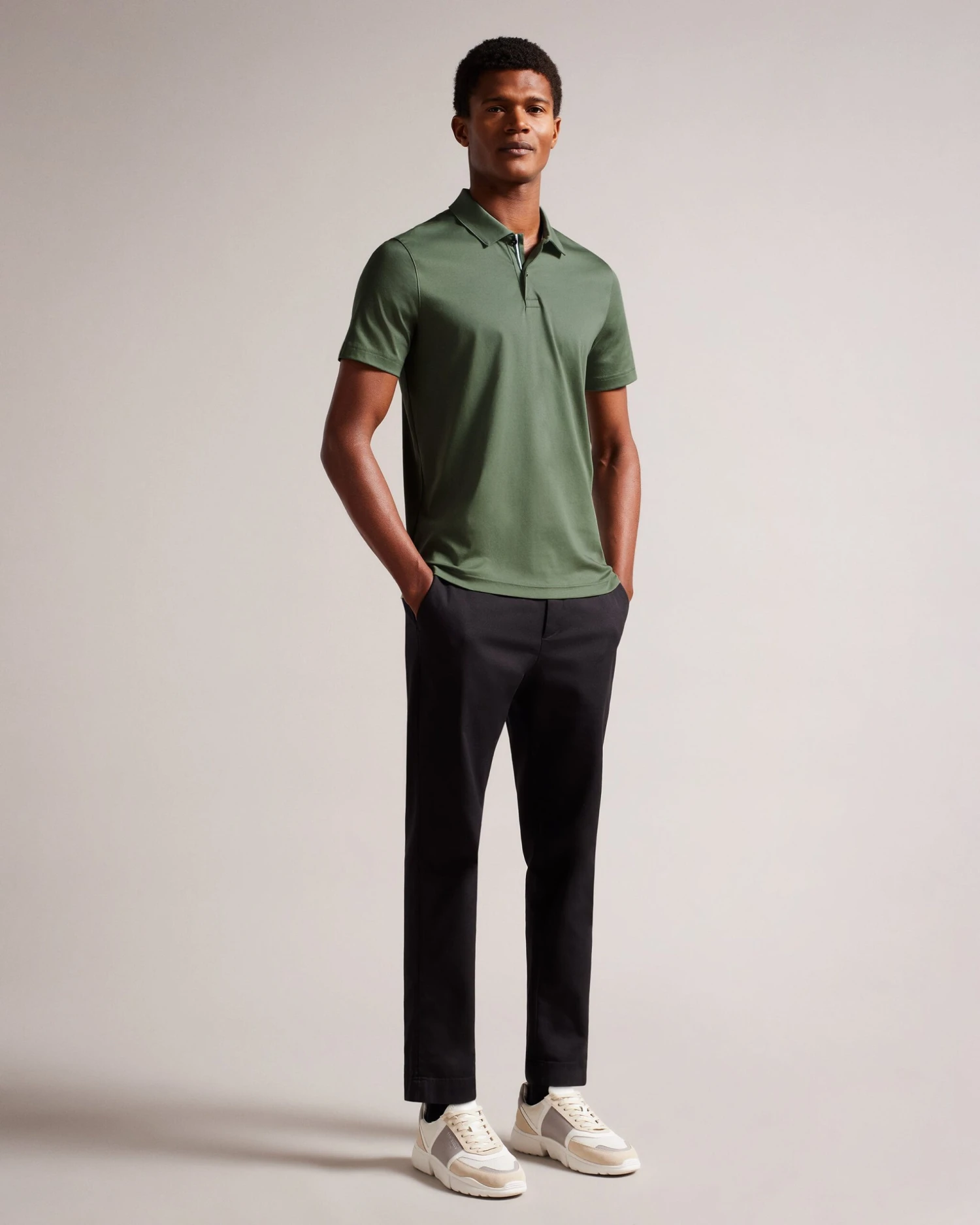 Polo shirt 100% cotton Classic collar Slim fit Short sleeved Button placket Elliot is 6’2″ / 1.88m and wears Dark Blue in a Ted size 3