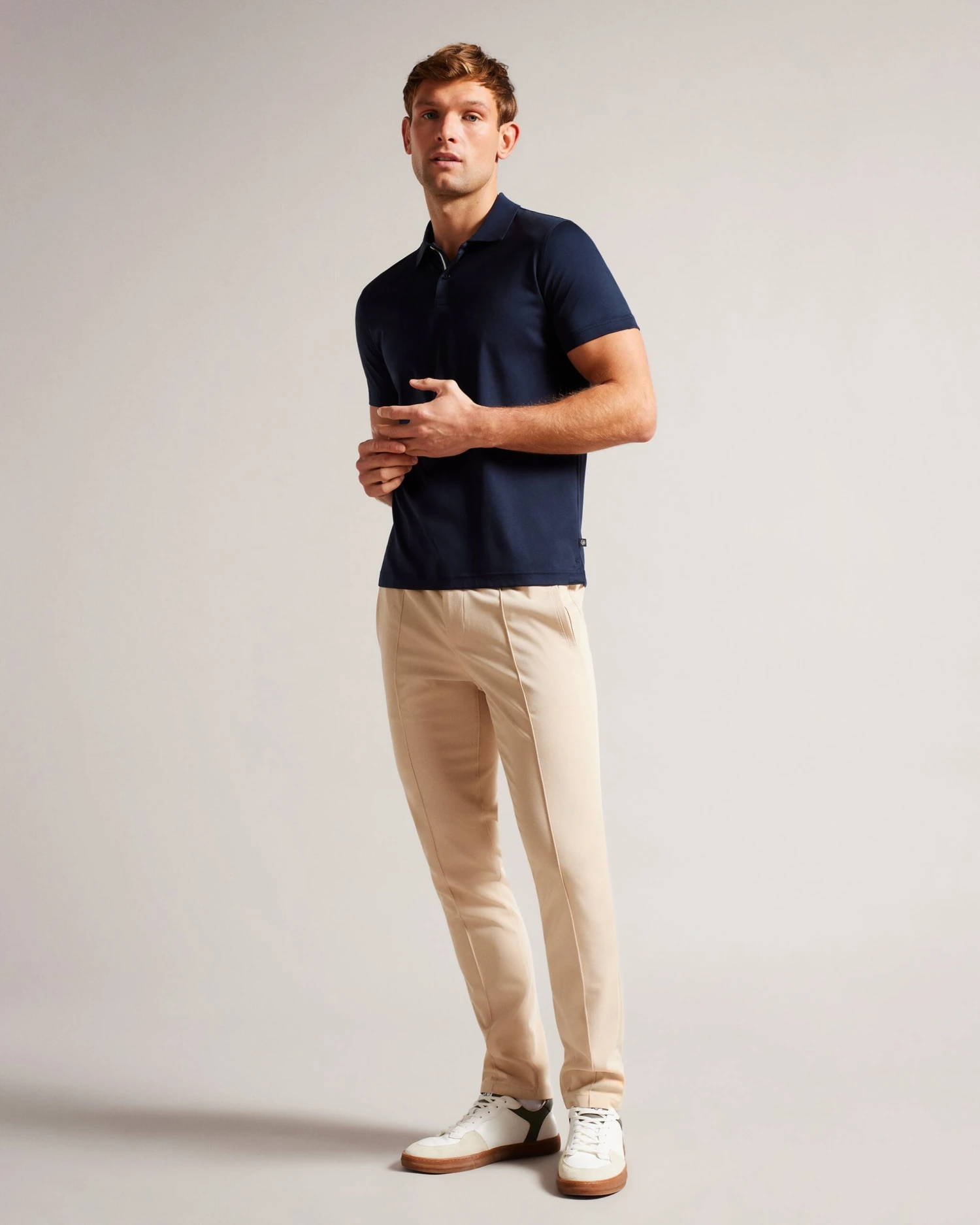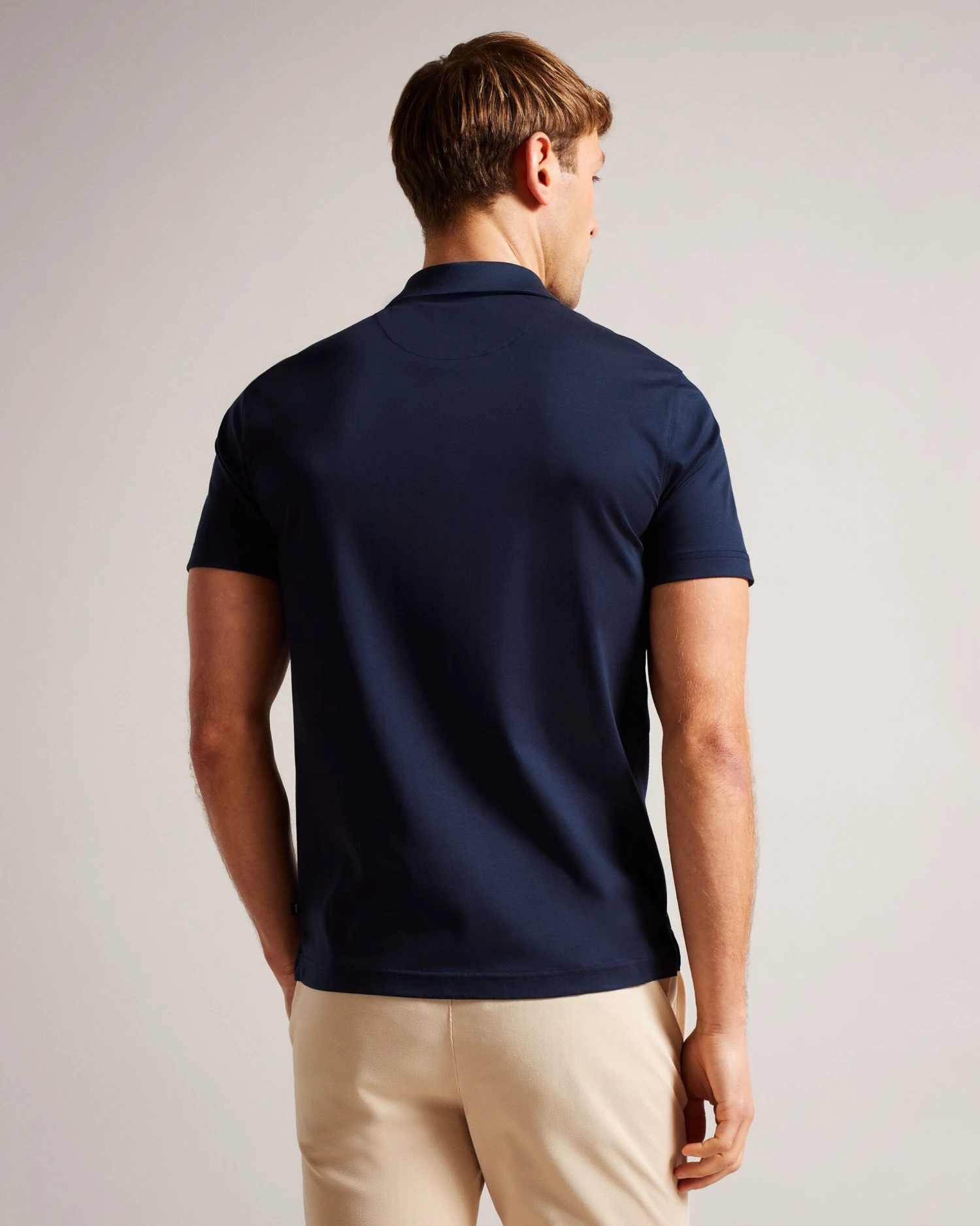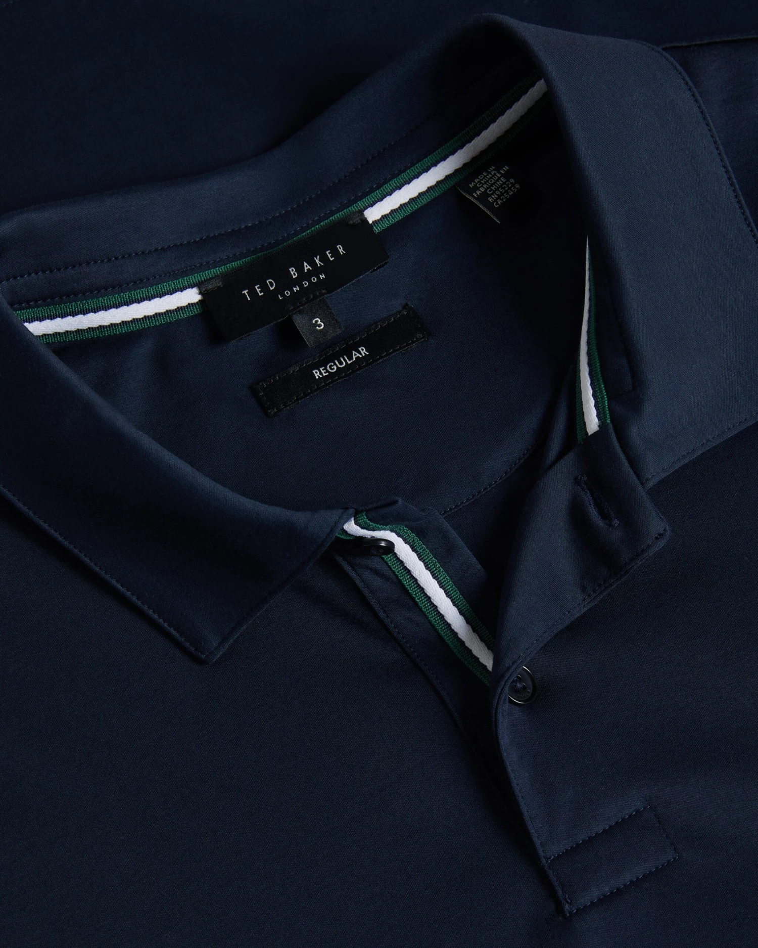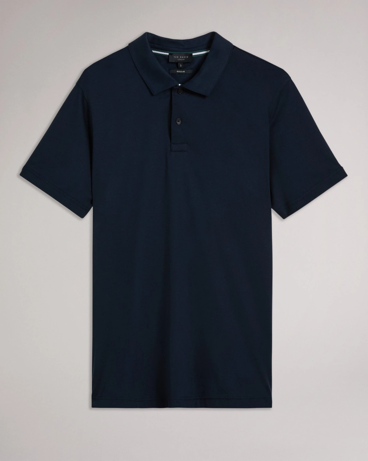 Polo shirt 100% cotton Classic collar Slim fit Short sleeved Button placket Elliot is 6’2″ / 1.88m and wears Dark Blue in a Ted size 3